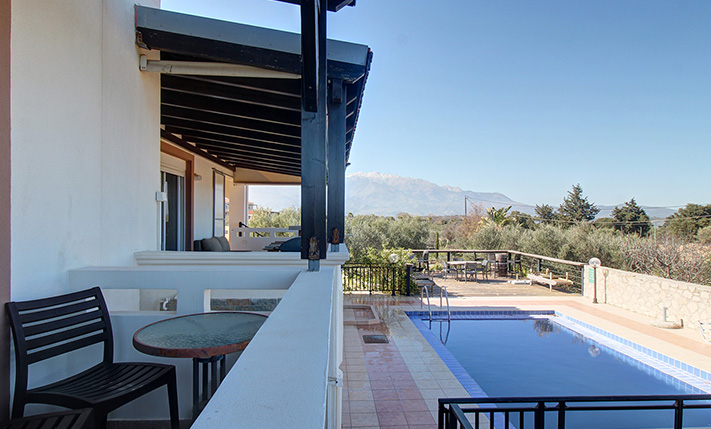 The nearby village of Vamos is widely regarded as one of the most charming traditional villages in the Apokoronas region. Its picturesque central square offers cafés, traditional tavernas, shops, a pharmacy, medical center, bank, and schools. The sandy beaches, waterfront restaurants and shops in the coastal towns of Kalyves and Georgioupolis are approximately 15 minutes away by car, while the historic Venetian city of Chania and its international airport can be reached within approximately 30–40 minutes, providing convenient regional and international access.