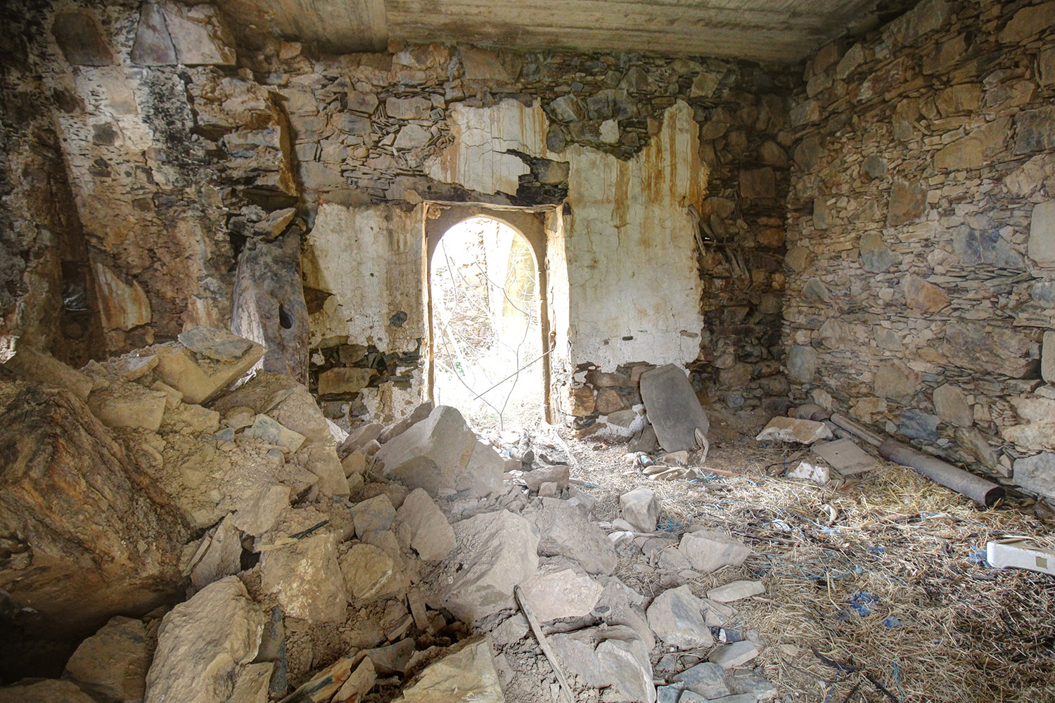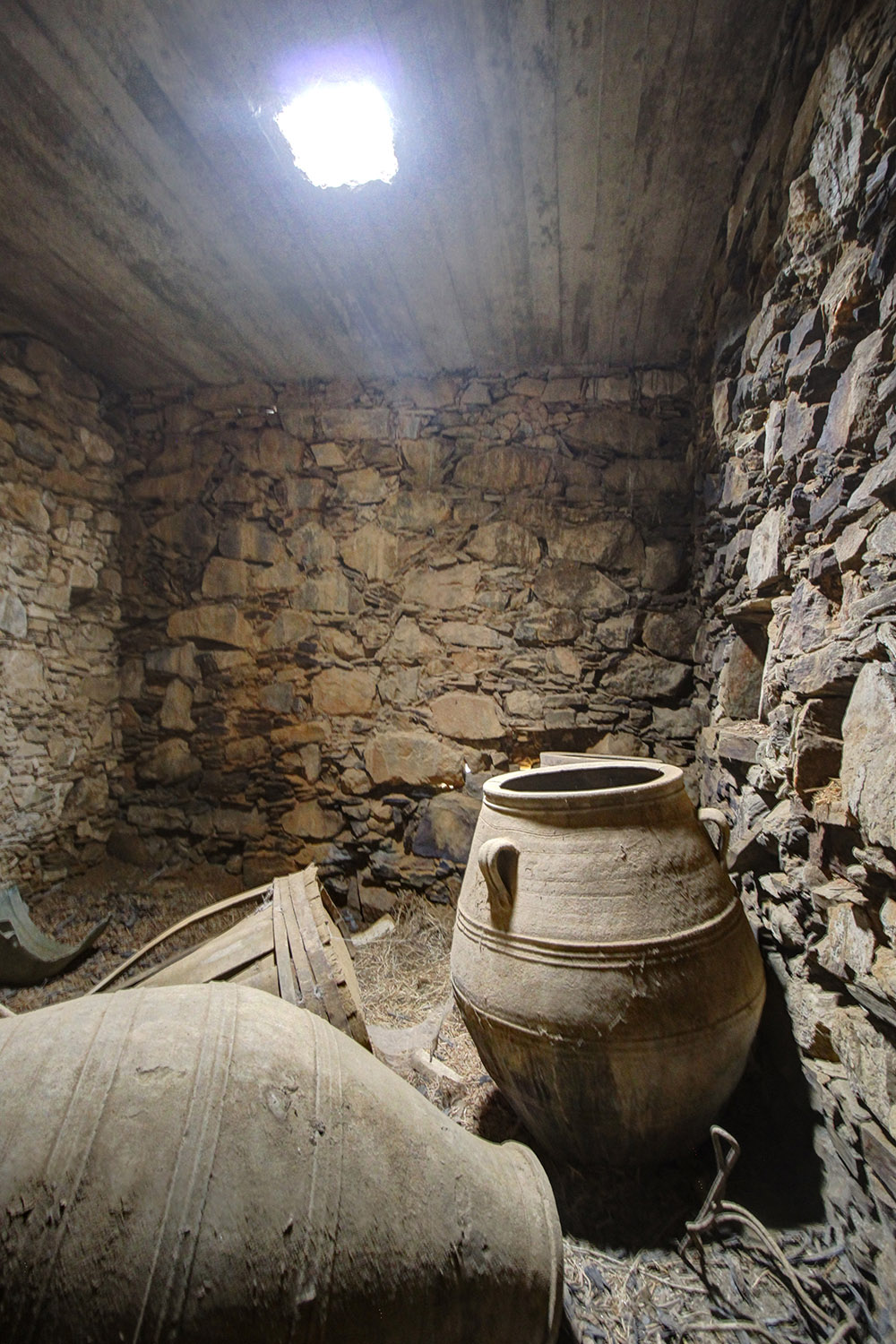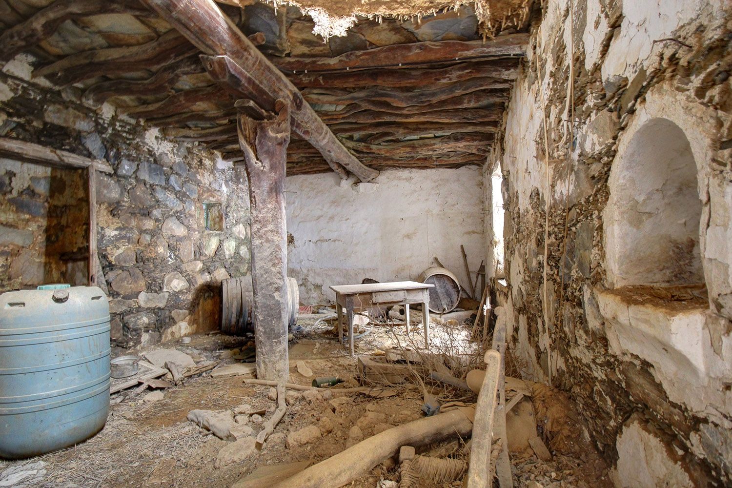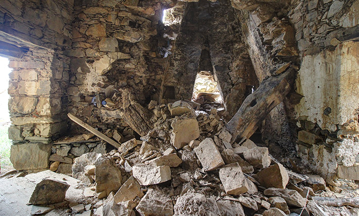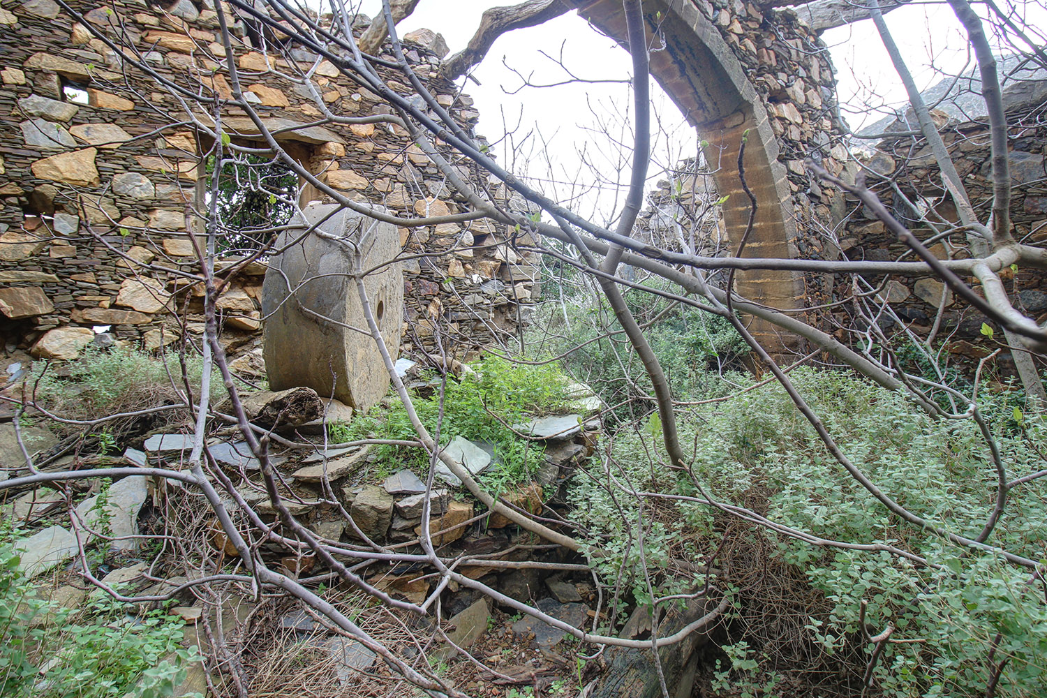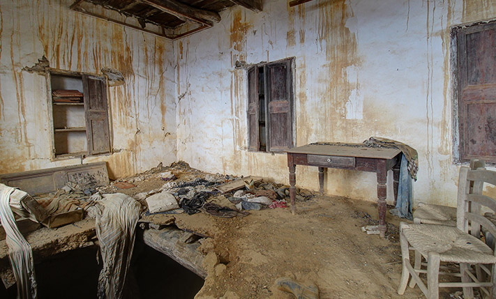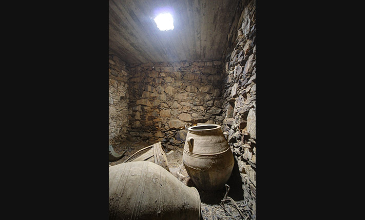 The residence is in a traditional neighborhood on a western hillside with impressive views of the verdant surrounding area and up to the sea. It is an old stone house with two levels, which needs restoration. It includes a covered section of approximately 130 m² that can be repaired immediately as well as two roofless buildings, on which you can construct a roof if you issue a building permit. These are an old storehouse of 29 m² as well as an old oil mill of 83 m², where the big millstones and the metal press have been preserved.