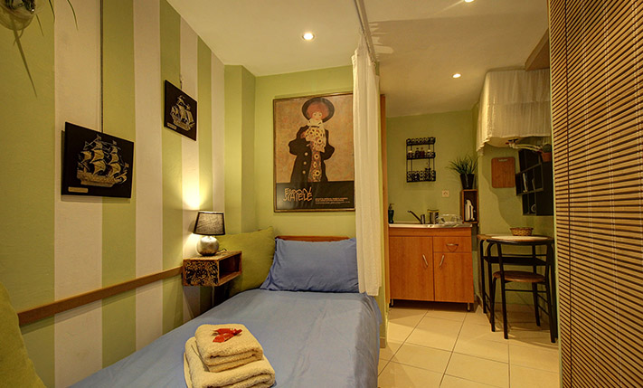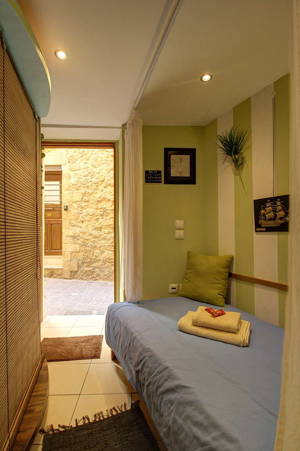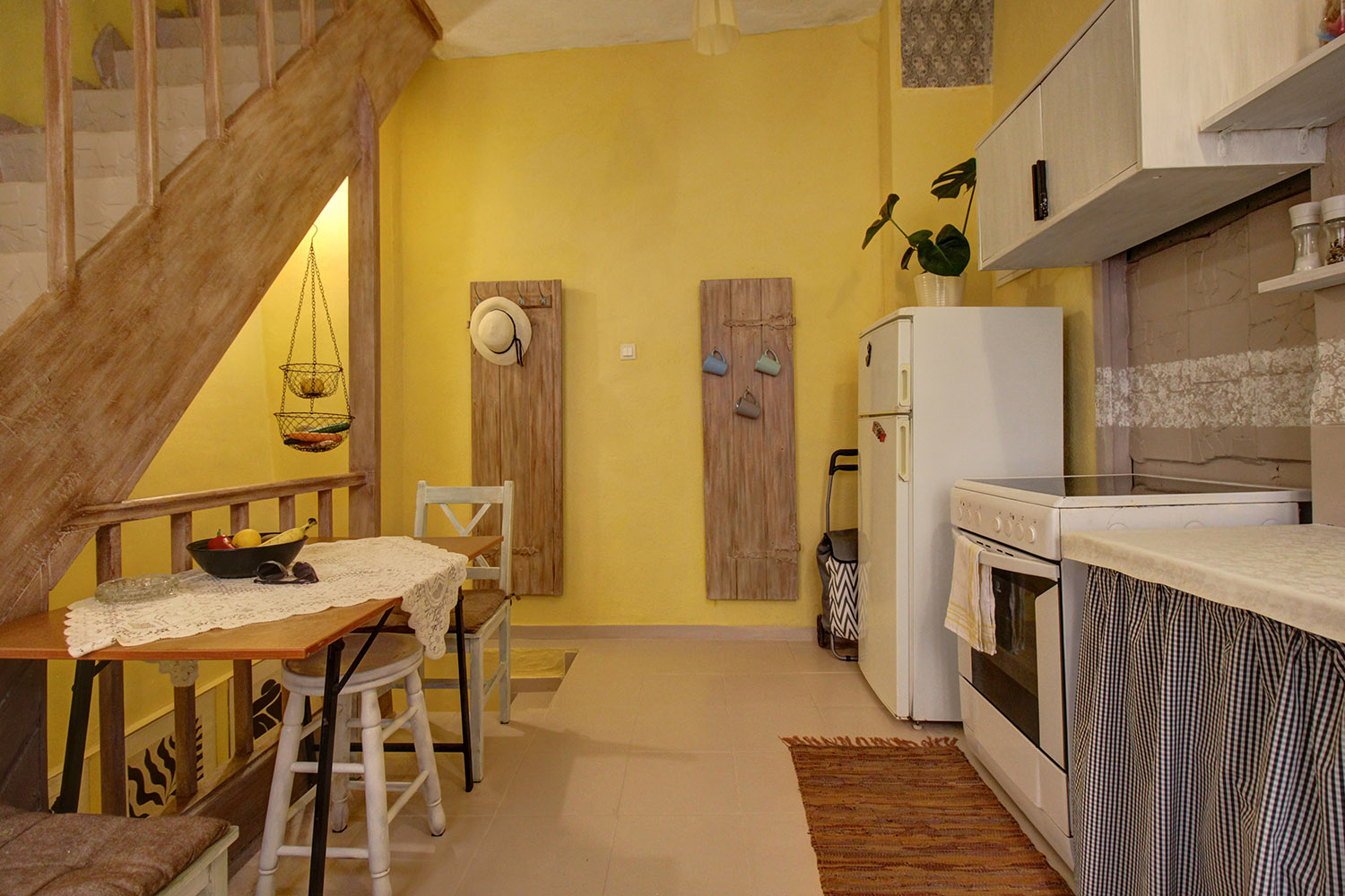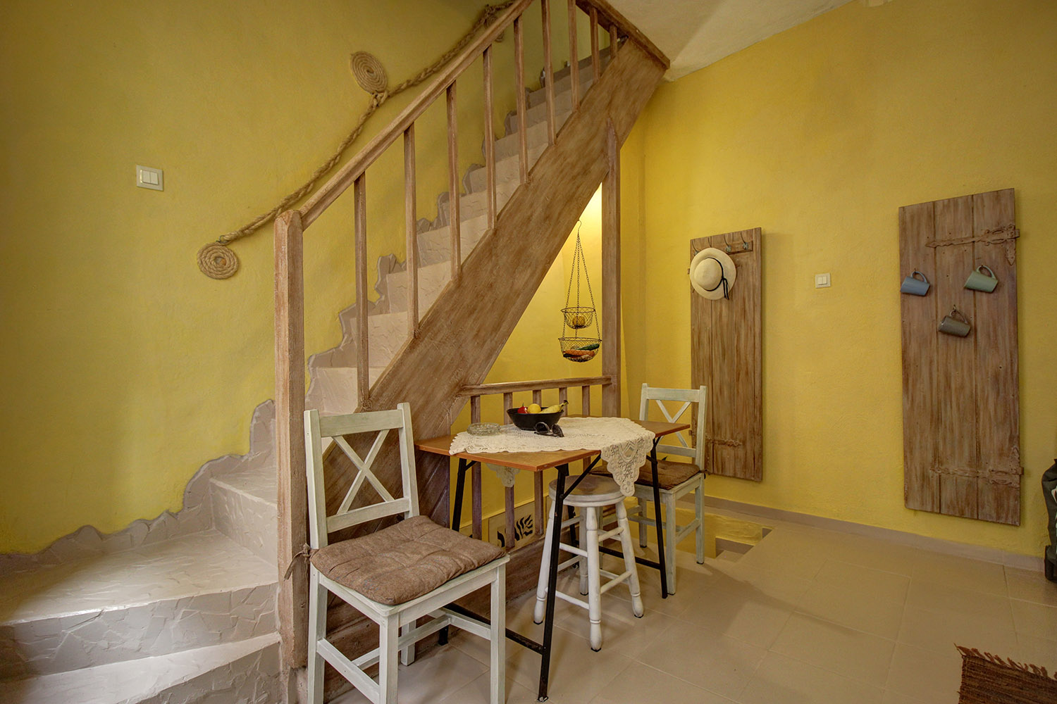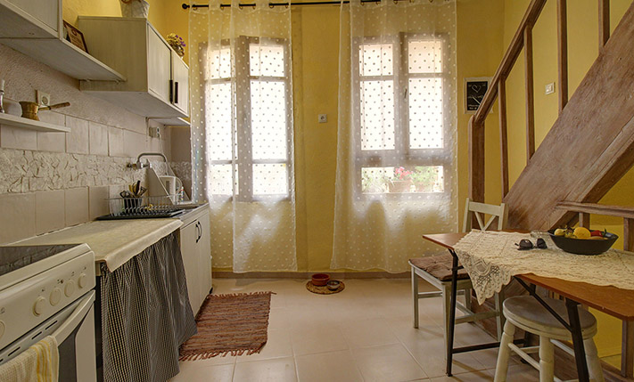 There are air conditioners in two of the bedrooms and the rooftop terrace has recently been waterproofed. The old wooden doors and windows have been preserved in order to maintain the original character of the residence. However, double glazing has been installed so that they are functional and there are no heat losses. The house is very bright compared to the buildings of the Old Town. It has been built in order to comfortably accommodate 6 to 7 people and in combination with its location, it is definitely an excellent choice for tourist rental and use.