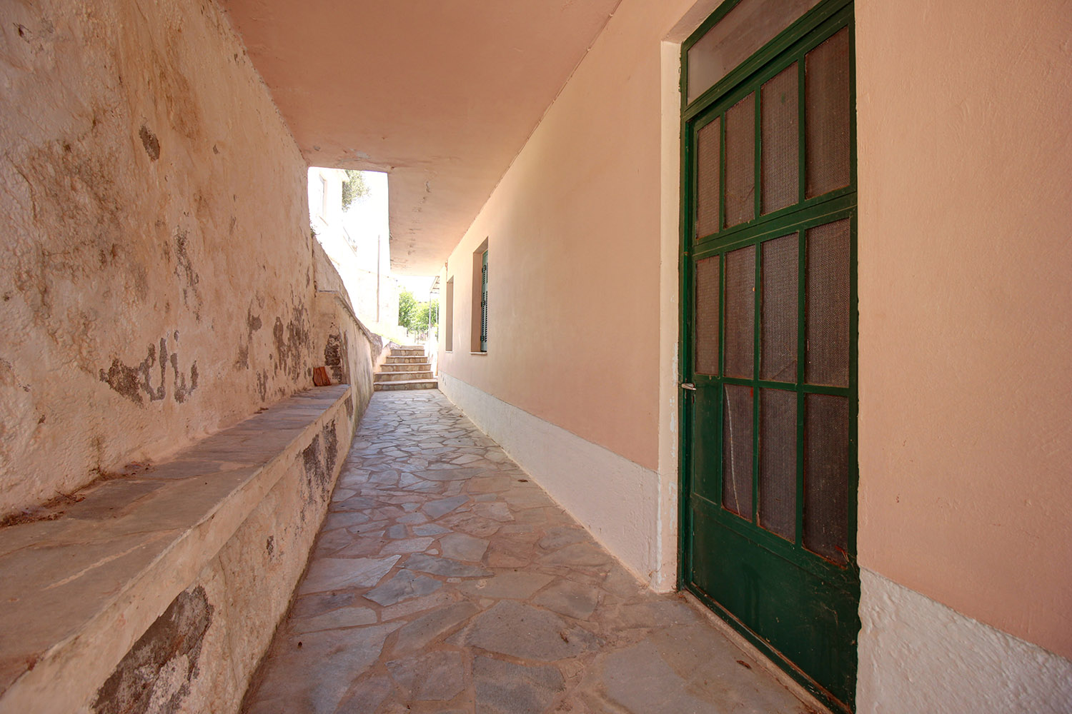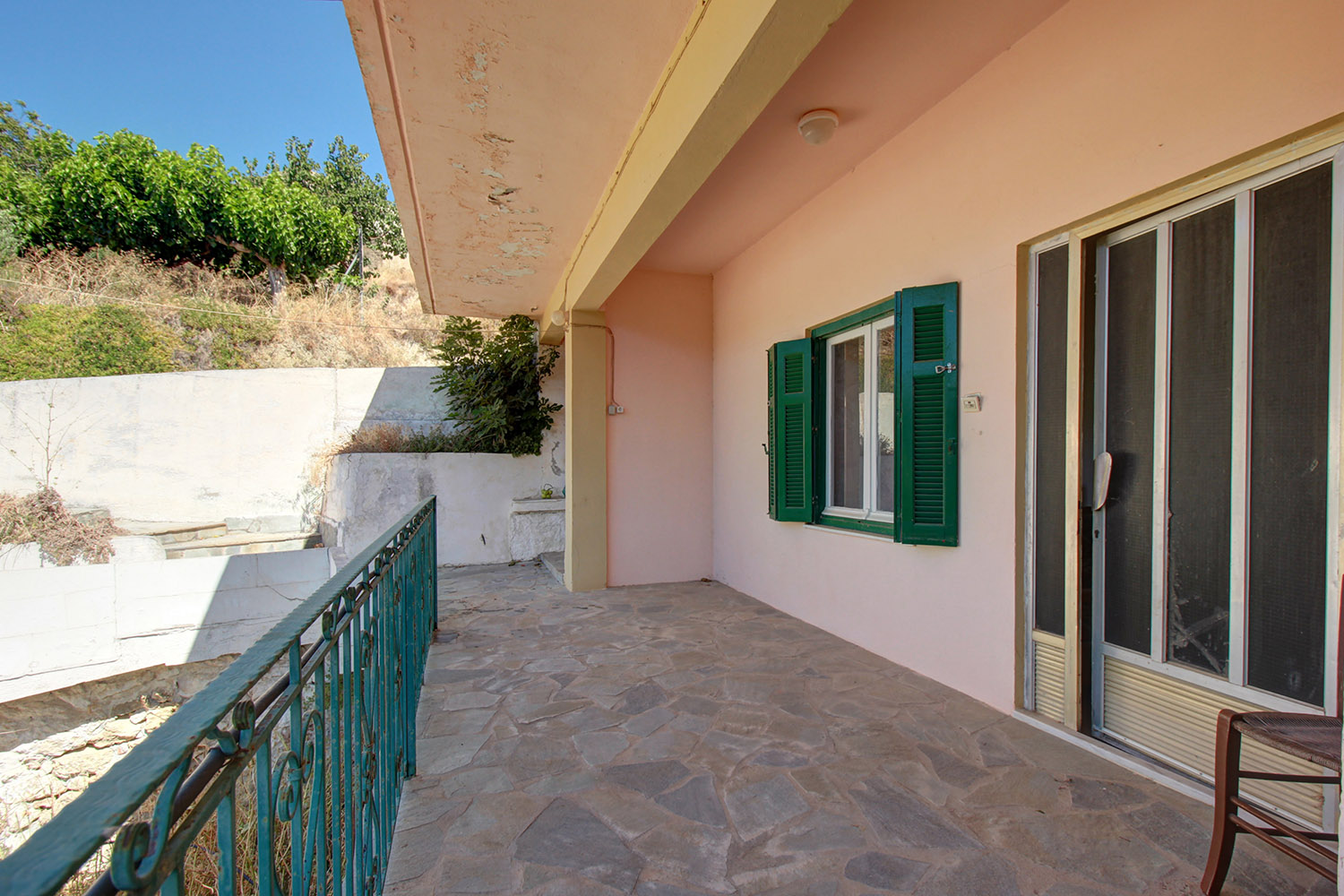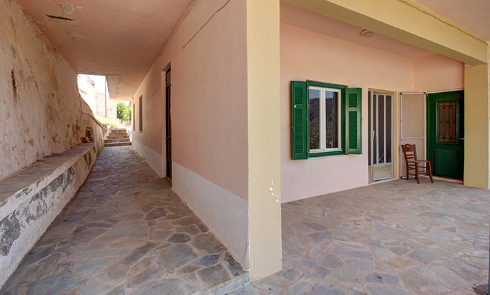 The main apartment is designed with an emphasis on large rooms. The main entrance opens onto the living and dining area, which is quite large and can also accommodate the kitchen if you renovate it. At the back, we find the space, where the sitting room was located but it can be used as a large or it may be divided into two smaller bedrooms. From here there is access to a storage area that continues with an exit to the yard. A hallway is connected to the kitchen, two more bedrooms and the main bathroom of the house. The hallway is quite wide and can be used as an additional good-sized living space. In one of the two bedrooms there is an en-suite WC. The kitchen has handmade wooden cabinets, a large marble counter and beautiful views. The smaller apartment needs some maintenance work in order to become habitable but has functional spaces. If you repair this residence it can be rented out and may provide you a significant income. It consists of a living and kitchen area, a bedroom and a bathroom.