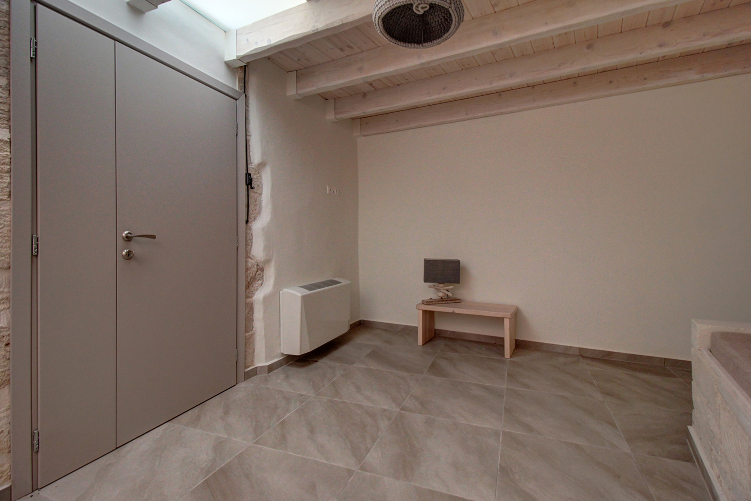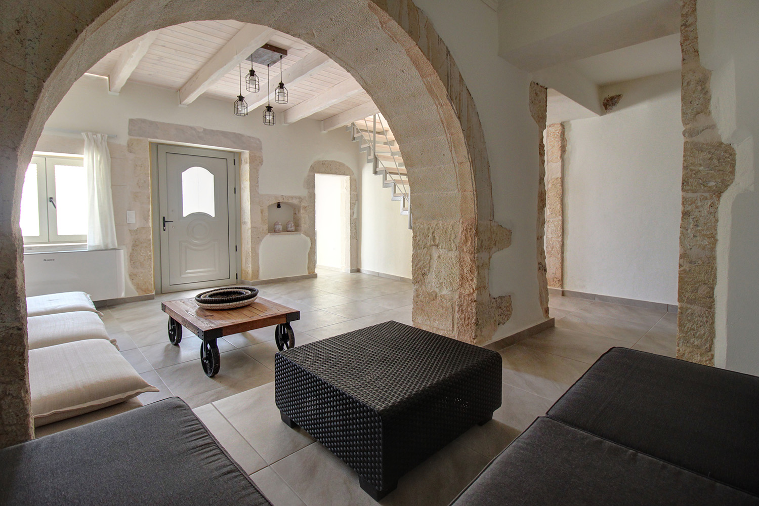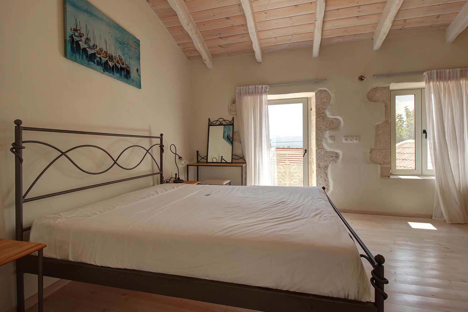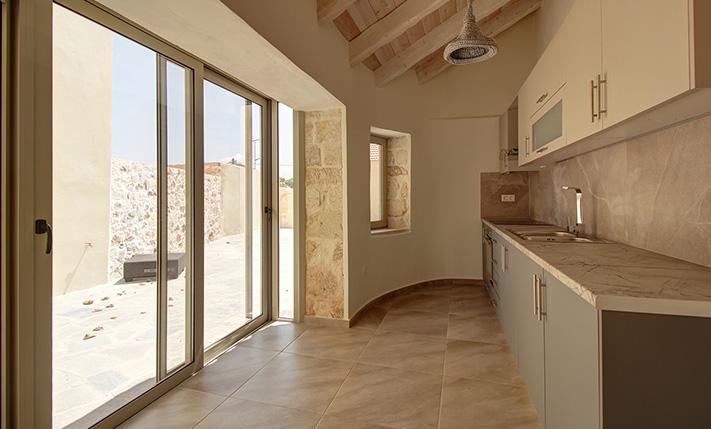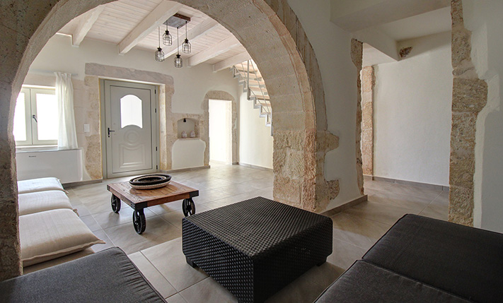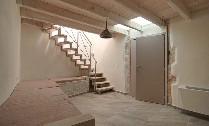 The residence is in a traditional neighborhood of Apokoronas, in the center of the village but with features that offer good privacy. It has a plot with a good-sized stone-paved yard, where you can later add a jacuzzi, swimming pool or a small flower garden. A small cobbled alley reaches the front of the property, from where there is an asphalt road just 10 m away. The width of the cobbled alley is about 2.5 meters and therefore a car can barely pass through it. The building has just been fully restored with new roofs, plumbing-electrical systems, carpentry work, floors, frames, etc. It is therefore a brand new residence, which is available for sale unused. It is modern and functional while also has many interesting traditional features from its original structure, which have been highlighted.