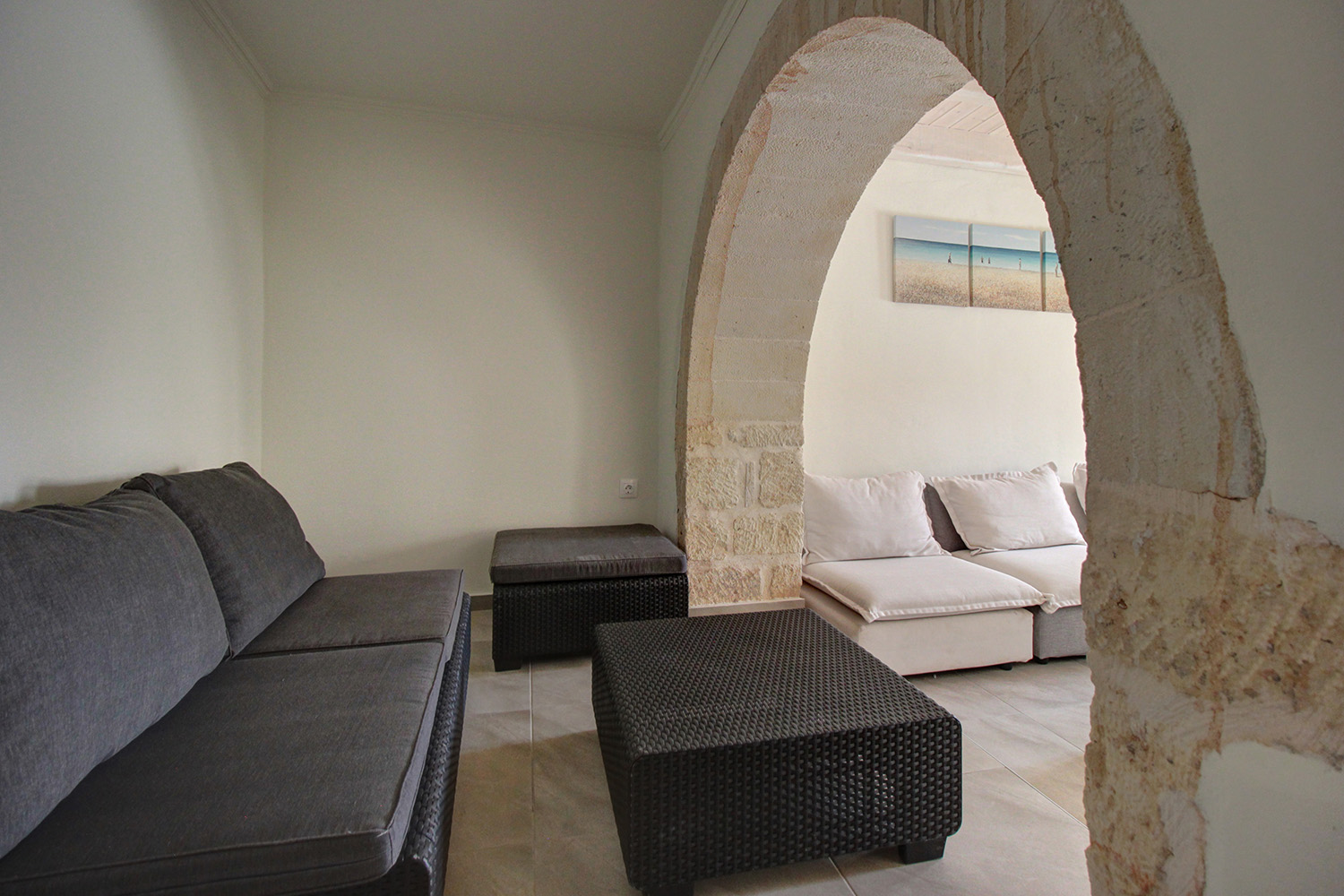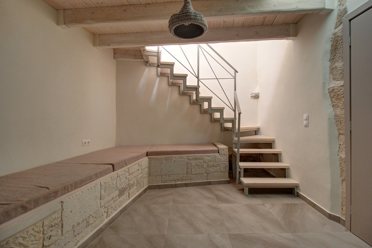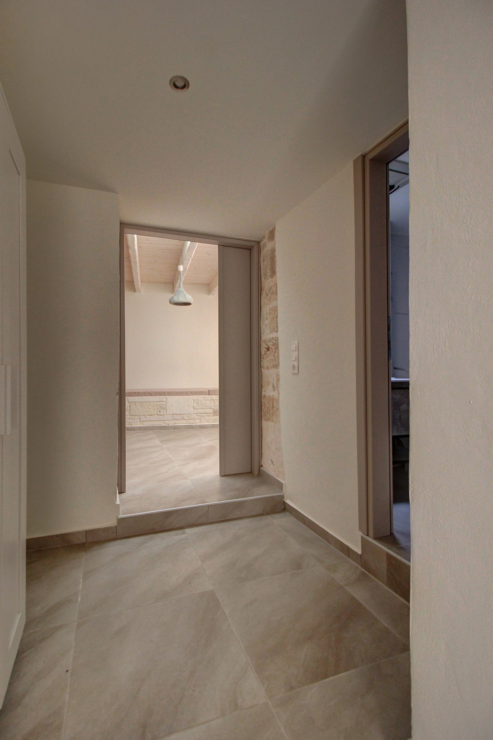 The residence is in a traditional neighborhood of Apokoronas, in the center of the village but with features that offer good privacy. It has a plot with a good-sized stone-paved yard, where you can later add a jacuzzi, swimming pool or a small flower garden. A small cobbled alley reaches the front of the property, from where there is an asphalt road just 10 m away. The width of the cobbled alley is about 2.5 meters and therefore a car can barely pass through it. The building has just been fully restored with new roofs, plumbing-electrical systems, carpentry work, floors, frames, etc. It is therefore a brand new residence, which is available for sale unused. It is modern and functional while also has many interesting traditional features from its original structure, which have been highlighted.