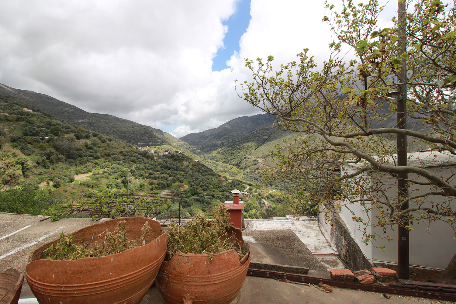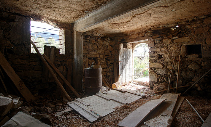 The land has an ideal southeast slope and the building follows the natural slope so that it is arranged over three different levels, each of which has access to a courtyard or garden and is therefore ground floor. From all points the views are unique over a verdant plain up to the beach of Stomio after about 9 km. From top to bottom the spaces are approximately 40 m², 130 m² and 35 m². The central and largest level is divided into three parts with independent entrances. The plot of the property is surrounded by a picturesque cobblestone path on three sides, which facilitates the possible independent use of each floor.