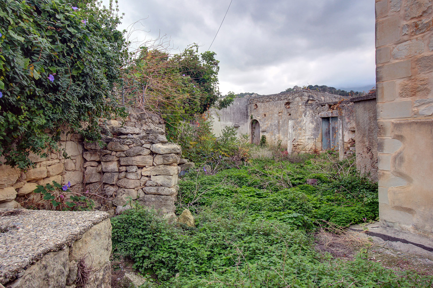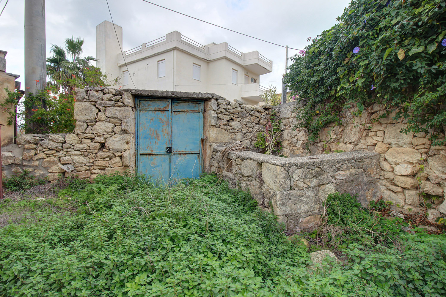 The old stone building needs repair. On the frontage of the property there is a high stone wall with a traditional door, just before the road in front and therefore there is complete privacy. The house is located in the center of the plot and divides it into two parts. The part of the frontage is ideal if you want to create a parking space while the back side faces southwest and offers excellent views towards the ridge of the White Mountains. The size and layout of the building allows you to create at least two large bedrooms and a central open plan living-kitchen area. The plot has remaining buildable, which allows you to extend the existing building by adding more rooms or an upper floor. You can, alternatively, construct at least one more independent residence on the unbuilt part of the plot, a swimming pool, storage rooms, a guest house or anything else according to your needs.