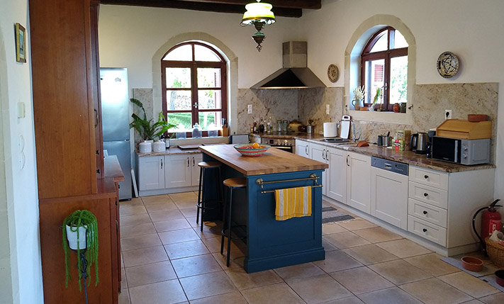 Within walking distance, the nearby village is very picturesque and has cafes, taverns and a well-equipped mini market. Within less than 5 km away is the long beach of Kavros, which offers many options with quiet spaces and areas with facilities. Here, you will find a big supermarket and several shops. The seaside small town of Georgioupolis, which is within 15 minutes' drive, has a bank, bakeries, pharmacies, many traditional taverns and more. The cities of Rethymnon and Chania are about 30 and 50 minutes' drive, respectively while the airport of the prefecture about 1 hour's drive.