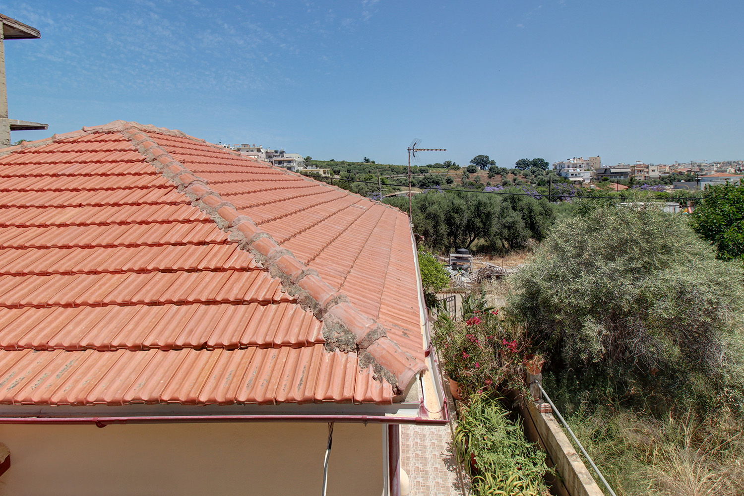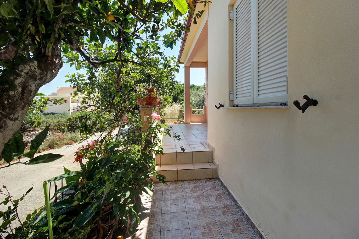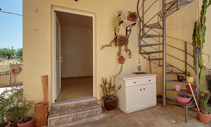 The property is on the edge of Chania city, on a quiet side road and in a family-friendly neighborhood west of the center. It is a ground-floor detached house of 79 m² with an independent auxiliary building of additional 18 m² at the back side, which is currently configured for use as a guesthouse. The two buildings are only 1 m apart and the remaining buildable area upon the plot allows you, among other things, to connect them.