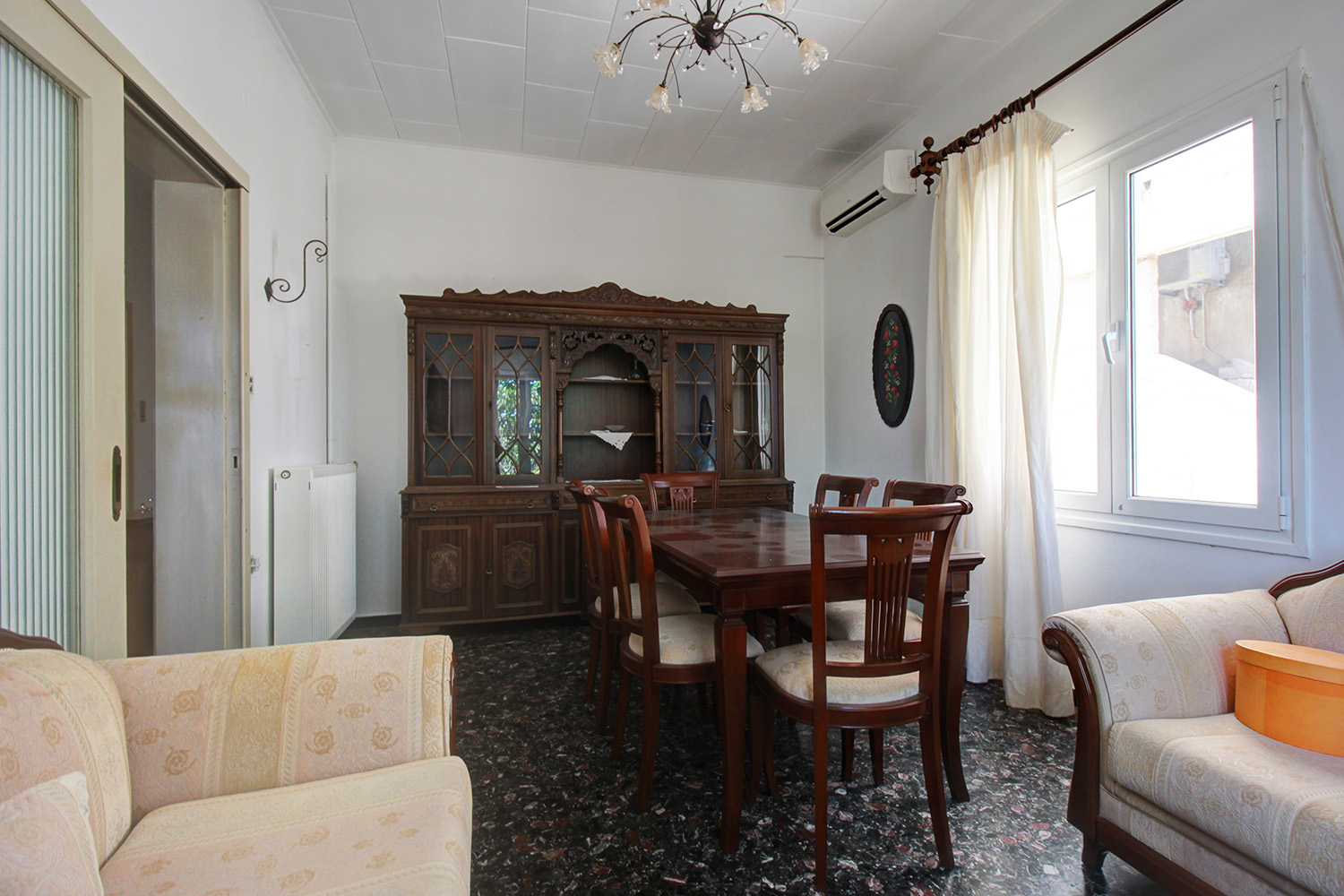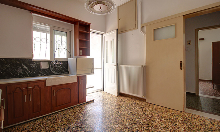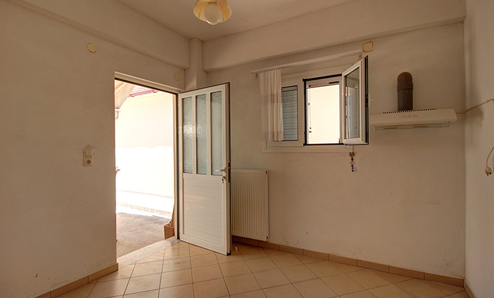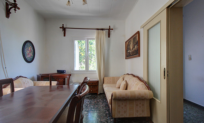 The original building has a permit of 1971, was constructed a few years later while it was almost completely renovated in 2000, when new aluminum windows and doors with double glazing and tilt system, central heating with radiators and oil boiler and a new bathroom were installed. There are also two air conditioners in the living space and in the kitchen as well as a solar panel. The property is ideal if you are looking for something independent close to the city. It is immediately habitable while you can make improvements in order to increase its value. Within a short walk there are big supermarkets, a bakery, some shops and good public transport links to and from the city center. Also within walking distance is the large sandy beach of Kladisos while the Market Square ("Agora") in the city center is only 2 km away.