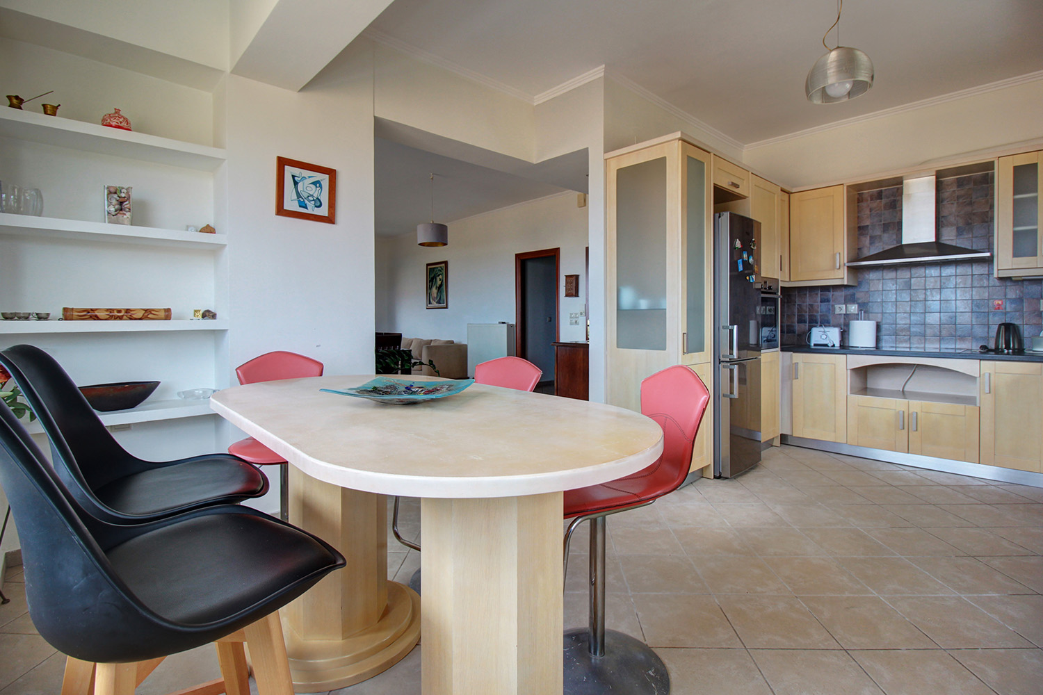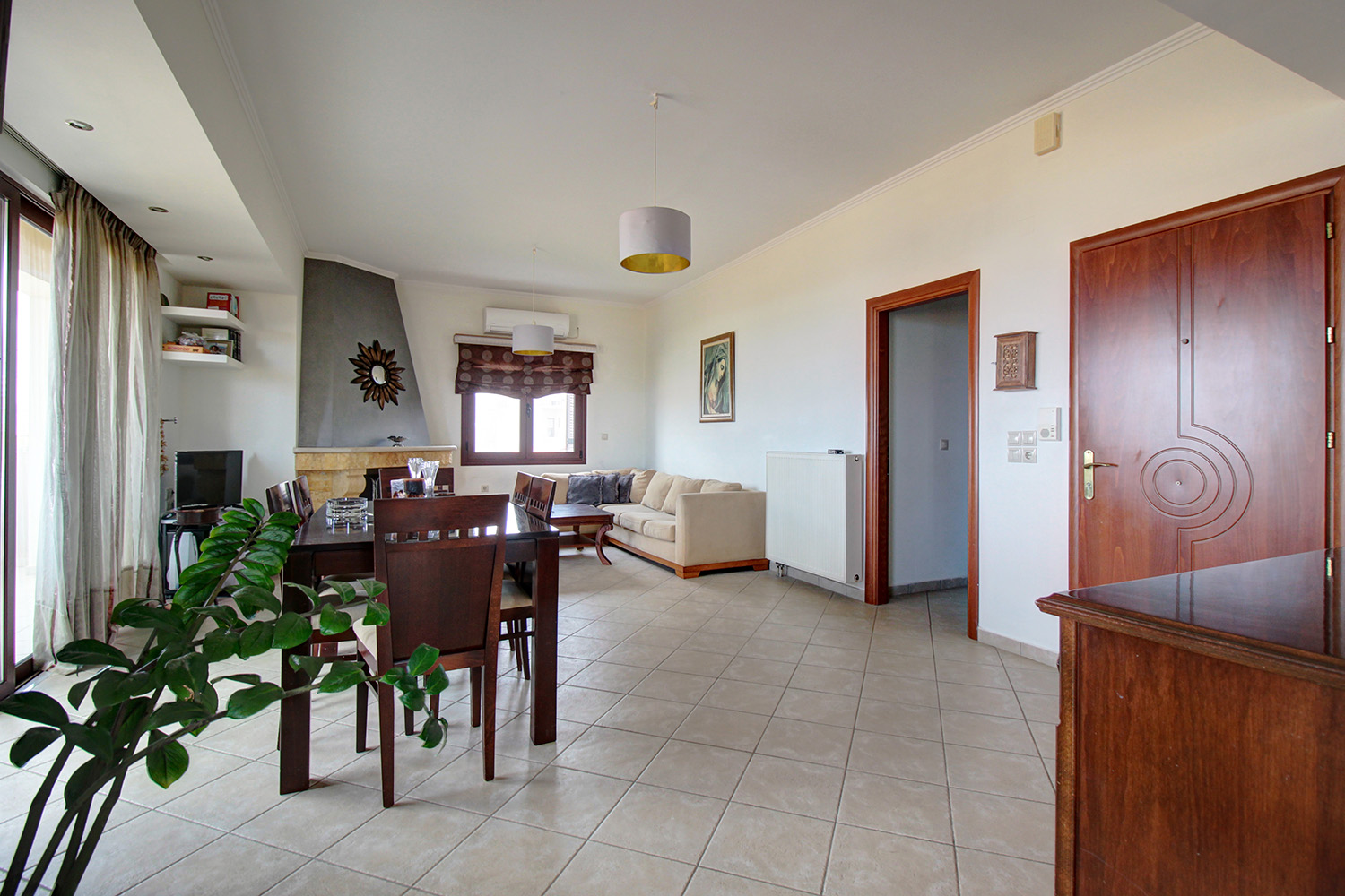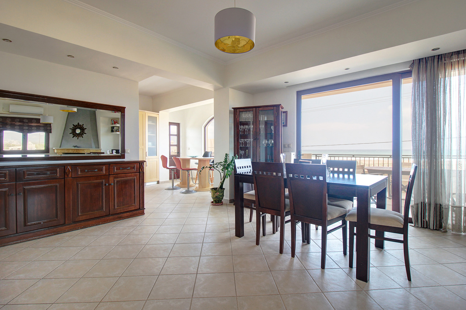 The apartment was not constructed for sale and is of high quality while emphasis has been given to the size of the rooms, natural light and orientation towards the sea. Each apartment has three bedrooms, two bathrooms as well as a large open-plan space on its north side. There are central heating with radiators and oil boiler that is independent for each floor as well as separate solar panel for each apartment.
