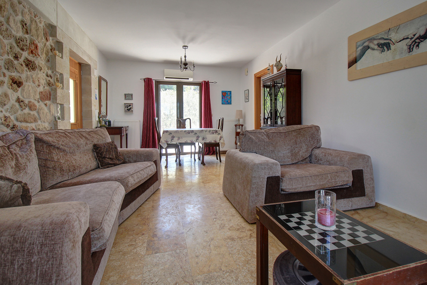The property is hidden among centuries-old olive groves and extensive cypress forests. It is in an absolutely quiet spot at the foothills of the White Mountains, yet the nearest settlement is only 400 m away. The owners are nature lovers and have created a unique space that, beyond its charm and functionality, promises an alternative lifestyle closely connected to the countryside. The surrounding grounds are designed to cover a significant part of your daily nutritional needs, while features such as the large private pool ensure that the alternative lifestyle offered does not deprive you of any luxury you may require.
