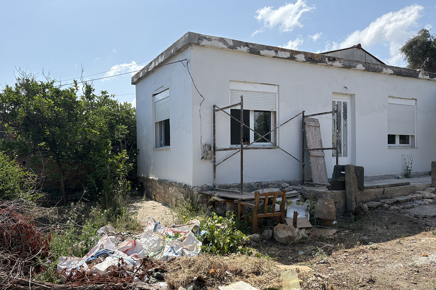 The property is in the district Pasakaki of the municipality Chania, on the southern edge of the city. It is the southern part of a larger plot and is accessible by an unofficial dirt road of approximately 3 m width. On the property there is a building of 45 m² and auxiliary spaces of approximately 30 m² in addition. The commercial value of the property lies mainly in the remaining buildable area as it has a building ratio of 0.6 upon the area of the plot and a cover rate of 60%. The existing building is in a location that allows you to stay in it while at the same time you may construct anything else in the free space.