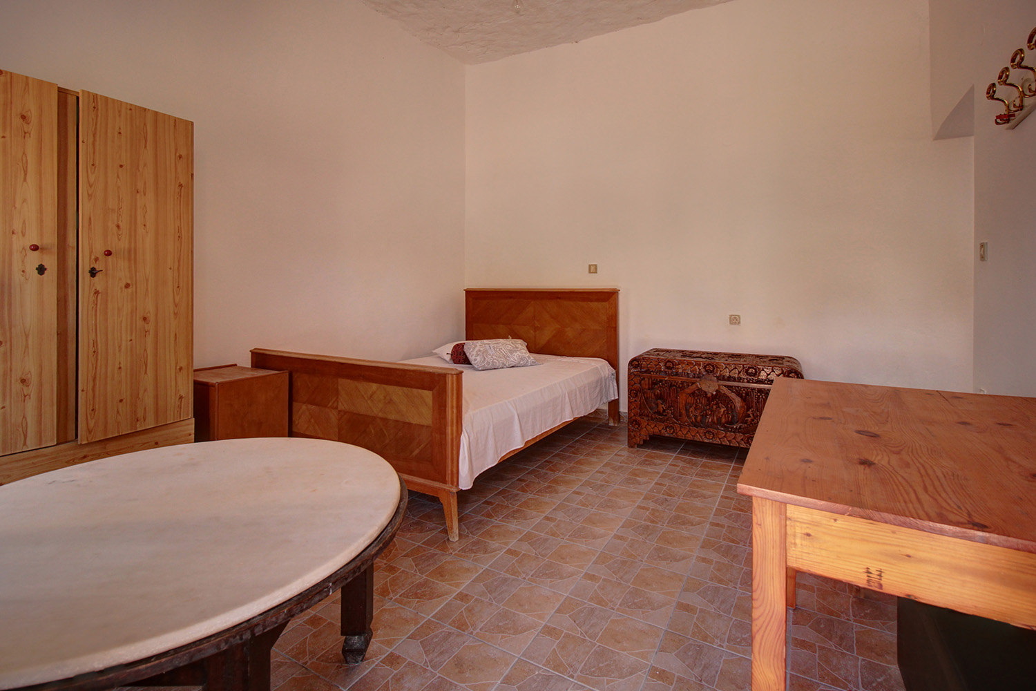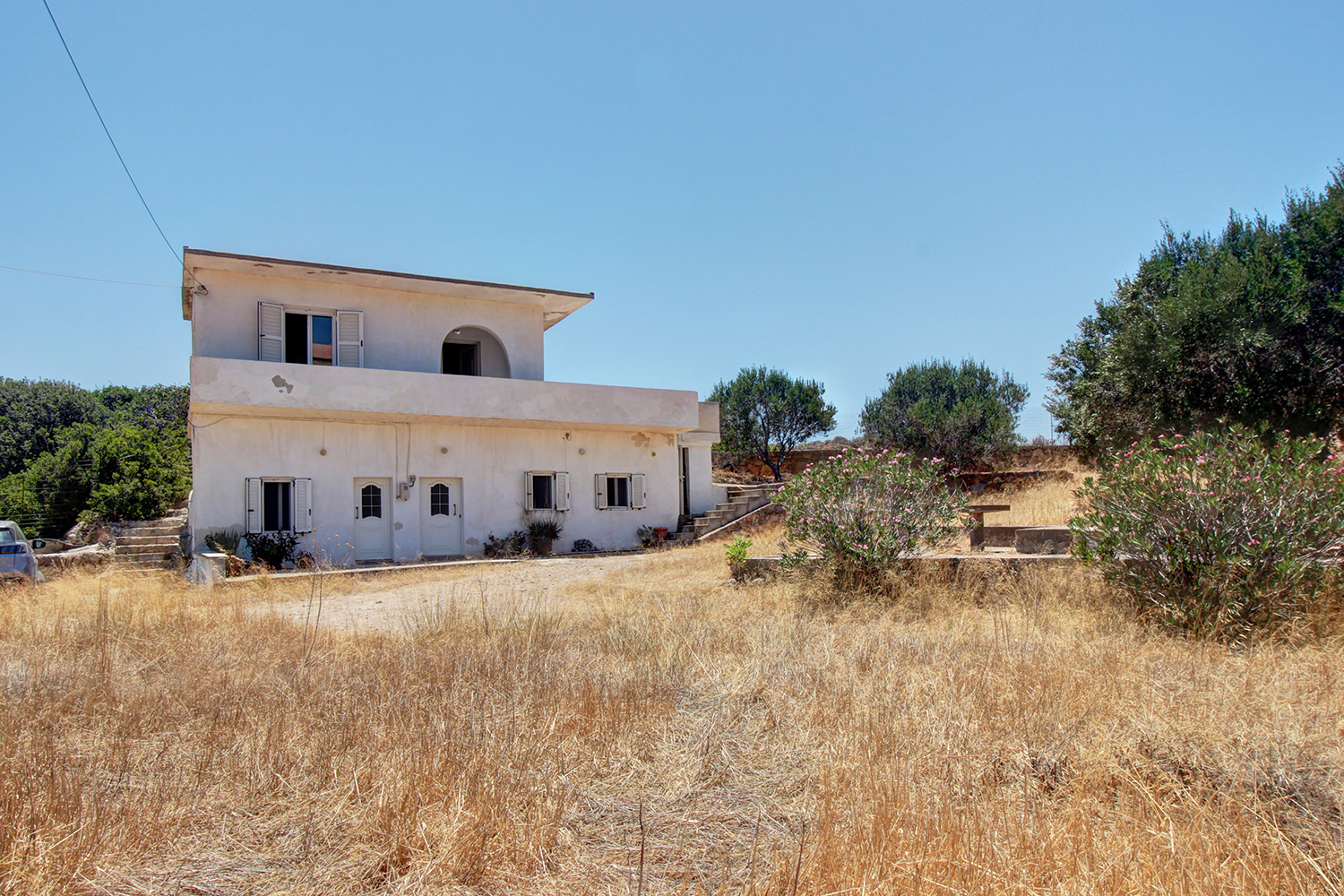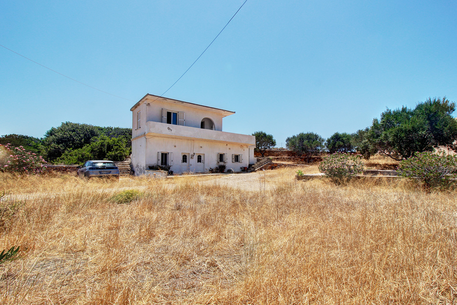 An important advantage of the property is its location, as it is situated right in front of the historic Moni Chrisoskalitissas, to which it has the best possible views. The plot is buildable with up to 400 m² for main residential use or even more for professional purposes. The existing building is on the edge of the village and is located at the southern end of the plot and therefore there is plenty of space to the north if you want to construct anything else. All the surrounding properties belong to the monastery, which ensures that the character of the area will not be spoiled by its rapid growth. Each apartment includes an open-plan living area, kitchen, bathroom and a bedroom. You can make improvements to both of them but they are immediately habitable and can even be rented out in order to have a significant income.