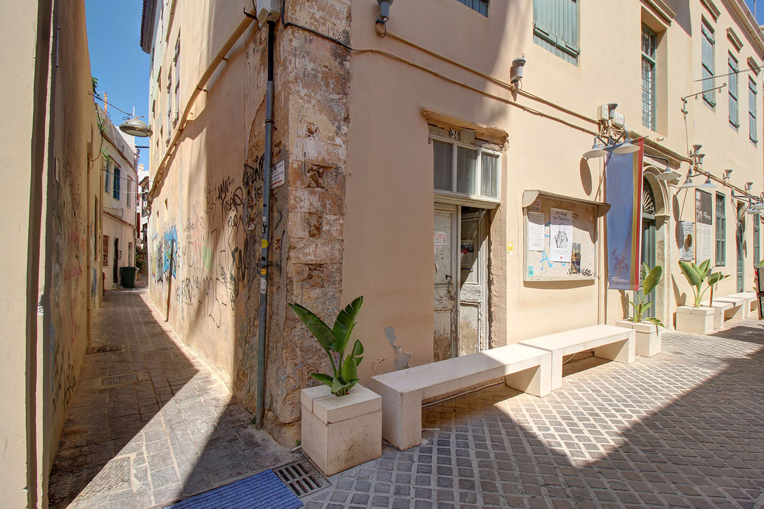 The property is located at number 22 Ntaliani Street and occupies the corner of a historic monastery building. It has a south frontage with a main entrance on Ntaliani Street as well as a large frontage with an opening onto a pedestrian road to the west. Ntaliani Street is one of the most popular in Chania. It is in the Venetian part of the city and in the district of Splantzia and attracts a significant part of the city's tourist and commercial traffic, all year round.
