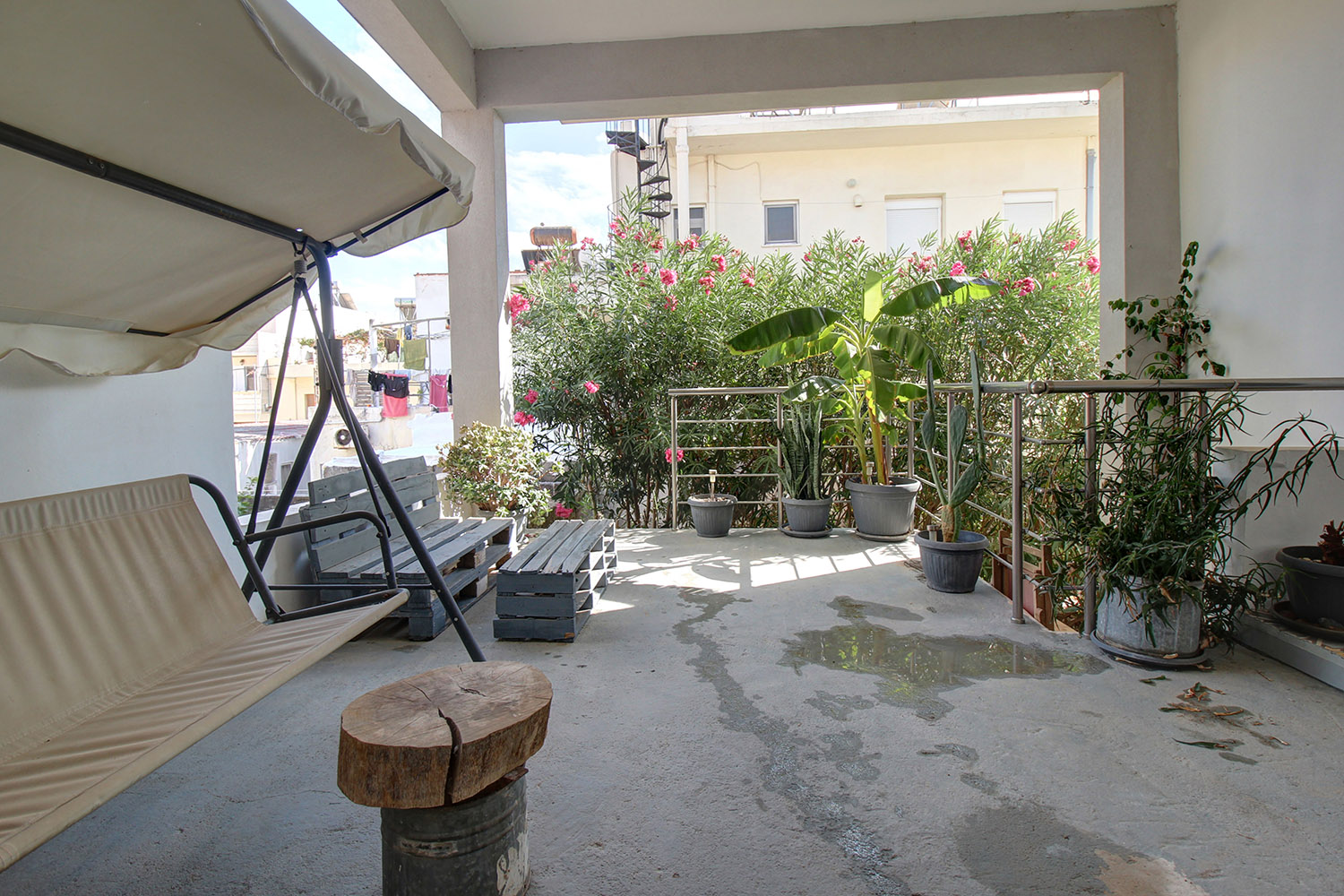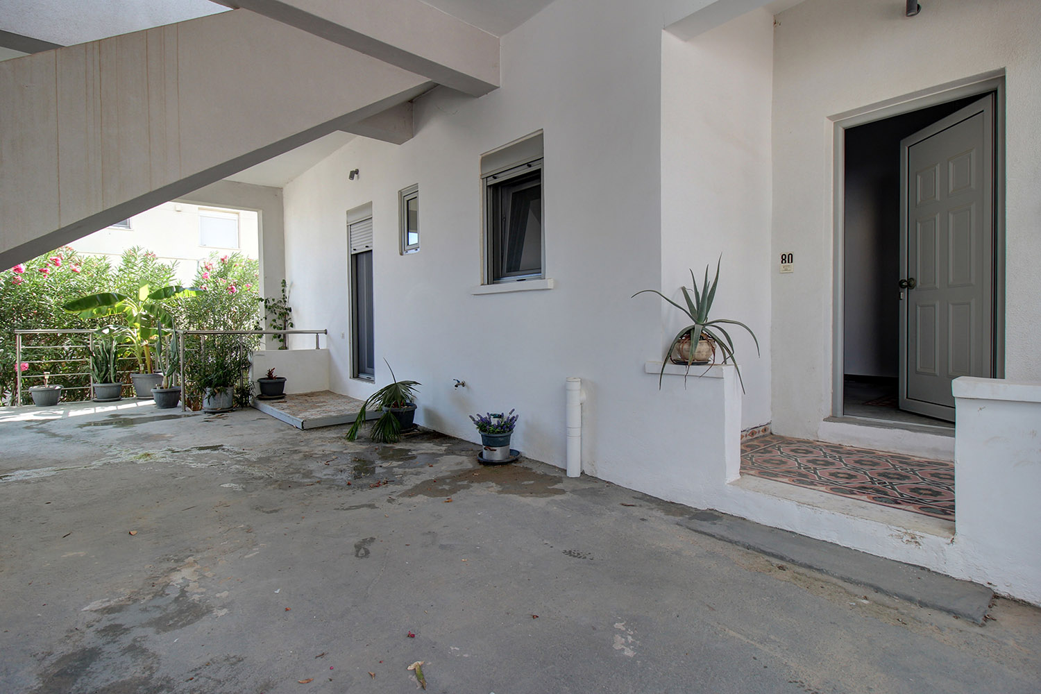 The property is in the district of Agios Ioannis, on the southeastern edge of Chania city. The location has good access to the center while the Court House Square ("Dikastiria") is less than 500 m away. At the same time, you can quickly exit the city with the junctions of the northern highway of Crete to Mournies or Souda that are both located about 5 to 10 minutes’ drive. Despite its hub area, the property is located almost at the end of a quiet side road in a family-friendly neighborhood with permanent residents.