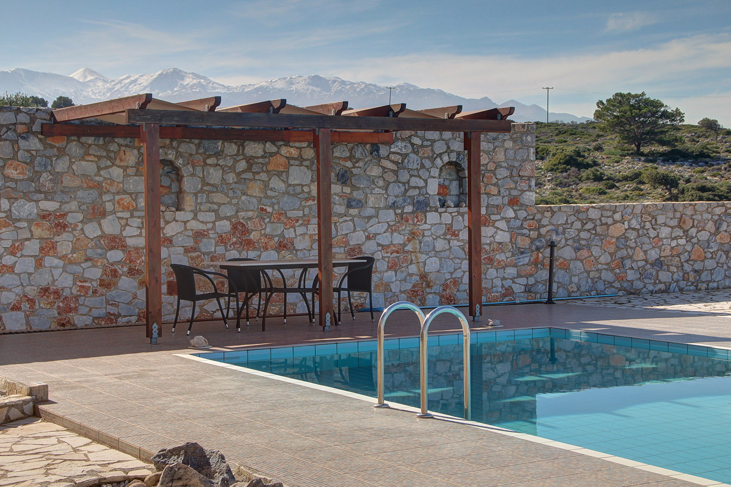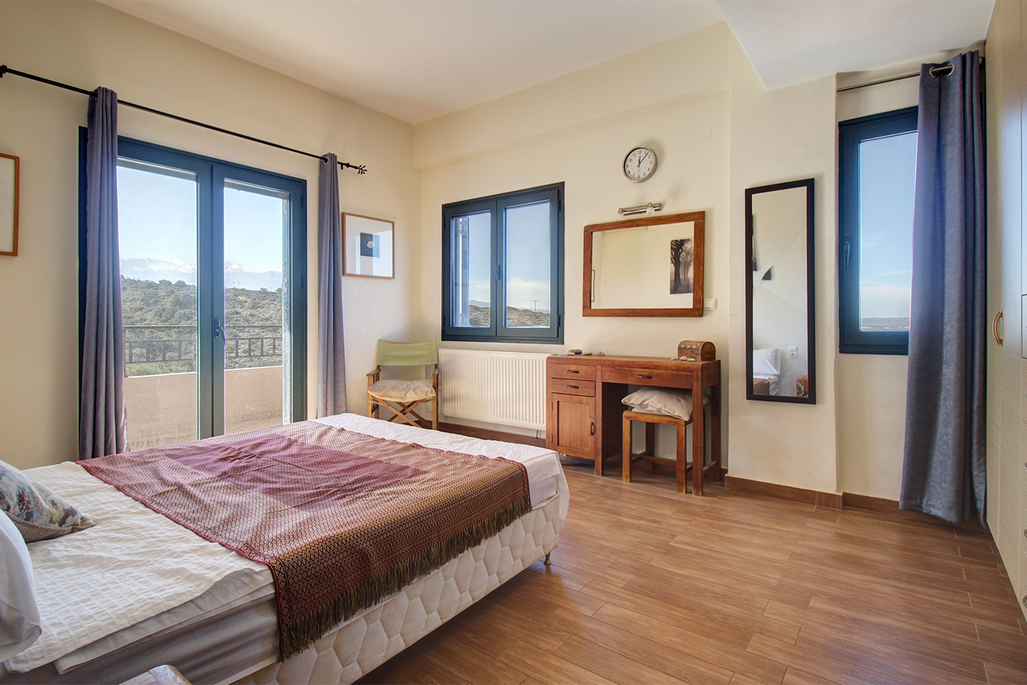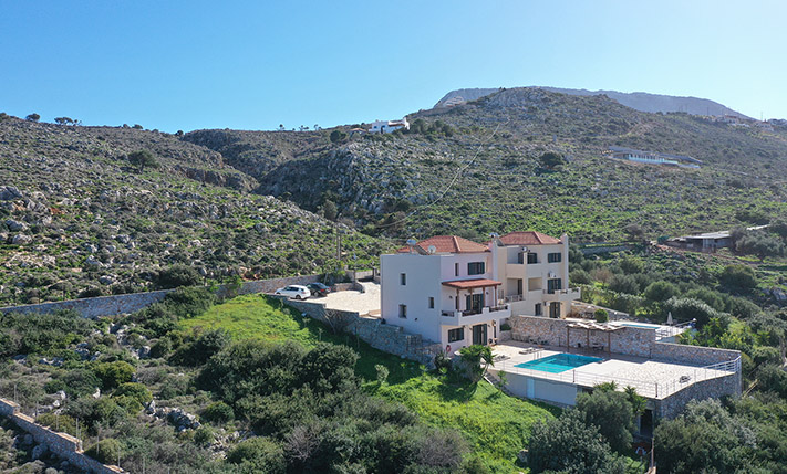 The property is located just outside the settlement of Kokkinos Horio, in the Apokoronas municipality, east of the city of Chania. It is a luxury villa built on a generous plot on a northwestern slope, offering unobstructed views of the sea and the Souda Bay. In addition to the sea, the property faces south toward the ridge of the White Mountains and the rugged Cretan landscape of the surrounding hills. The adjacent plots towards the sea do not grant building permission, ensuring that the current impressive view remains uninterrupted.