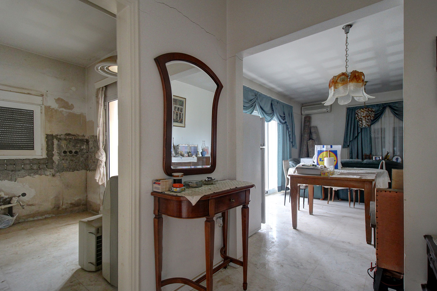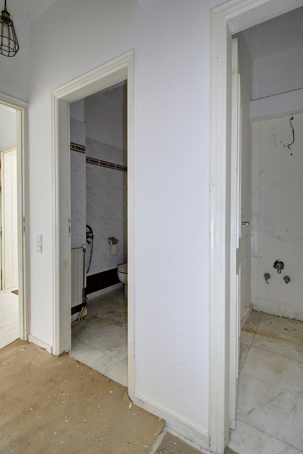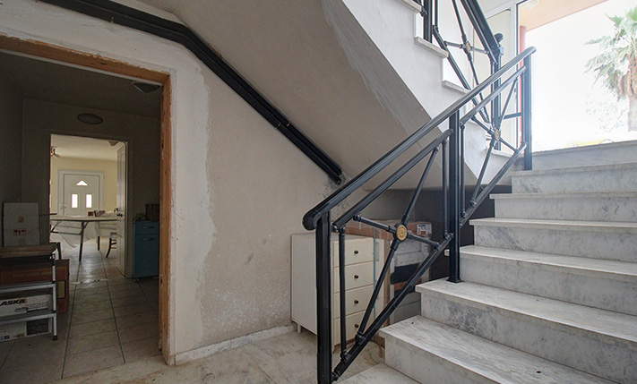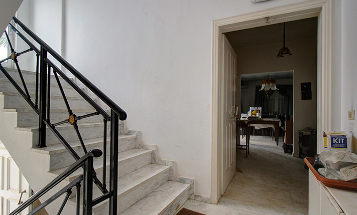 The property includes four apartments in total, which are connected by a central staircase that leads to the room of the rooftop terrace. One of the apartments is located in the basement, is approximately 53 m² and has natural light in all areas as well as an exit directly to the courtyard. On the ground floor there are two large apartments of 126 m² with three bedrooms in each. One of them has been partially renovated and a new kitchen has been installed while the installation of the kitchen is pending in the second. Both have an enclosed space with glass patio doors that faces the garden. The upper floor is occupied by a large apartment. The disadvantages of this part of the building are the many objects and the pending repairs but it definitely has luxurious elements that can be highlighted, such as the very large bright spaces, the completely white marble floors and the views that reach up the sea. The apartment has a total area of 194 m² and among other things has 4 bedrooms.