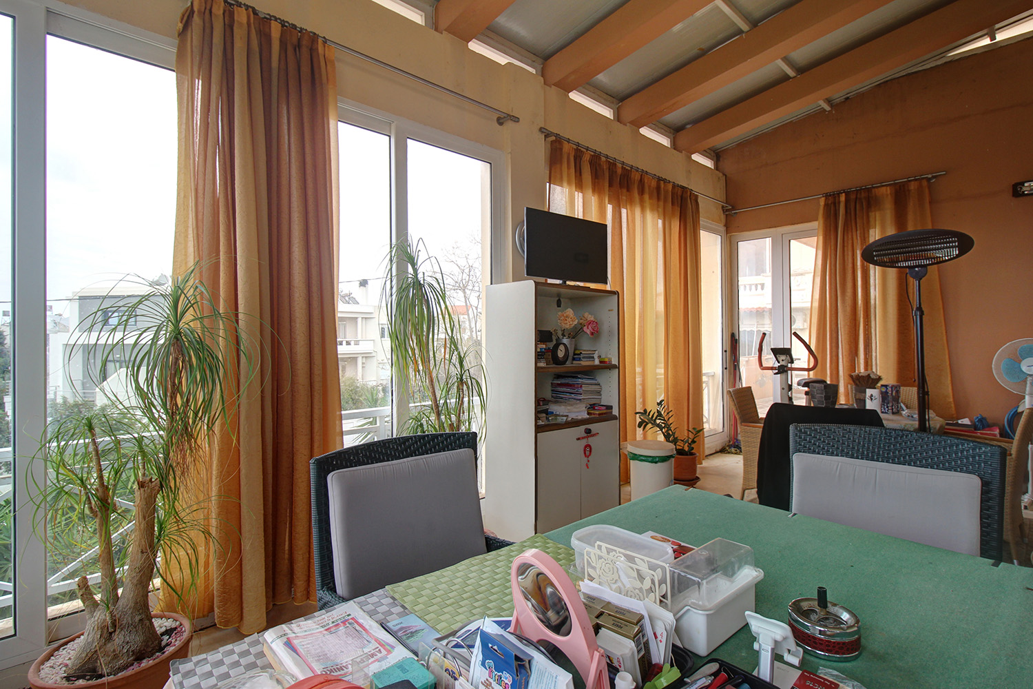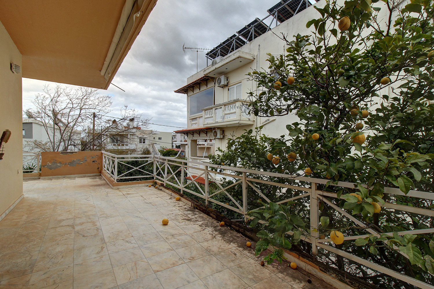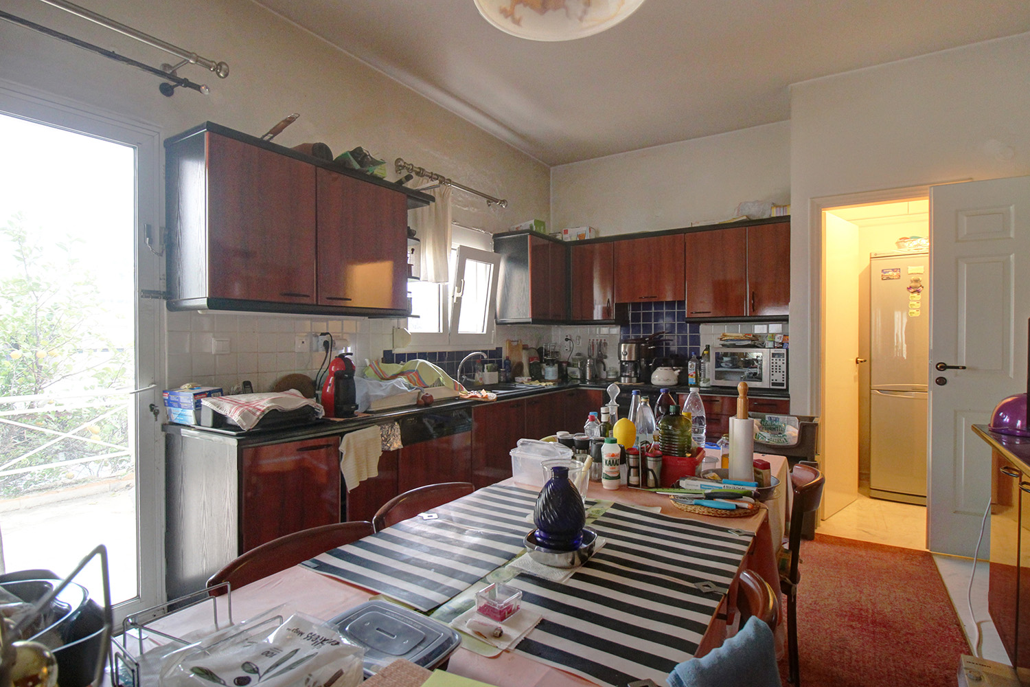 The property includes four apartments in total, which are connected by a central staircase that leads to the room of the rooftop terrace. One of the apartments is located in the basement, is approximately 53 m² and has natural light in all areas as well as an exit directly to the courtyard. On the ground floor there are two large apartments of 126 m² with three bedrooms in each. One of them has been partially renovated and a new kitchen has been installed while the installation of the kitchen is pending in the second. Both have an enclosed space with glass patio doors that faces the garden. The upper floor is occupied by a large apartment. The disadvantages of this part of the building are the many objects and the pending repairs but it definitely has luxurious elements that can be highlighted, such as the very large bright spaces, the completely white marble floors and the views that reach up the sea. The apartment has a total area of 194 m² and among other things has 4 bedrooms.
