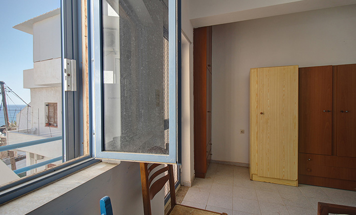 The two apartments face east and the upper one has views of the sea. Each has an open-plan area, two bedrooms and a central bathroom while upstairs there is provision for an additional WC or laundry room. Between them they share an open space, which ends at the rooftop terrace and which was built in order to be able to connect them with an internal staircase. Currently, the open space is used as an internal courtyard for the ground floor while inside it a modern and functional WC has been constructed.