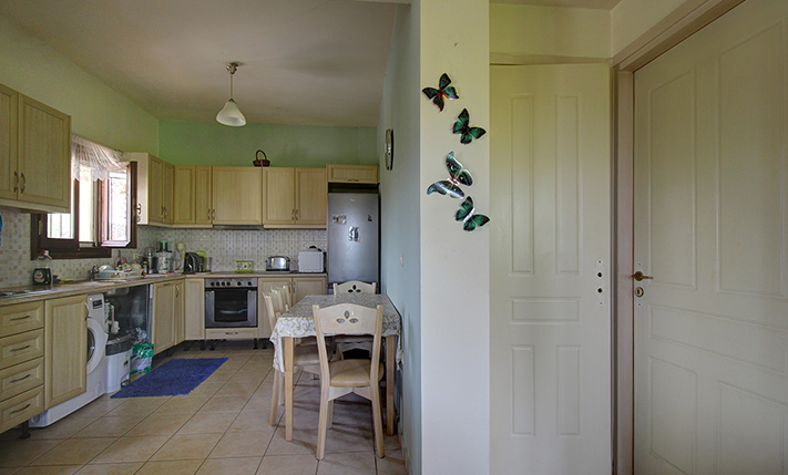 The property is in a quiet village, south and just outside the seaside Tavronitis of the Municipality Platanias. It is on a hillside with an eastern orientation and is the last house in a neighborhood with independent detached houses. The location is picturesque and surrounded by countless olive groves.