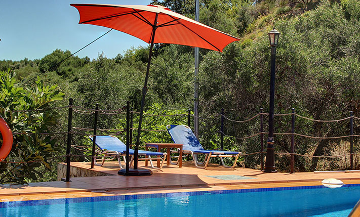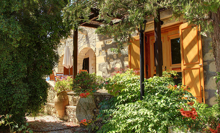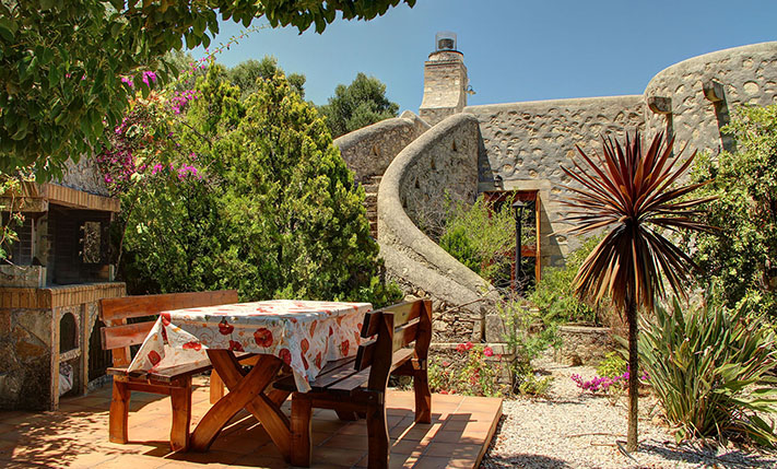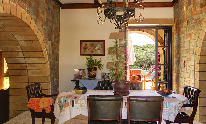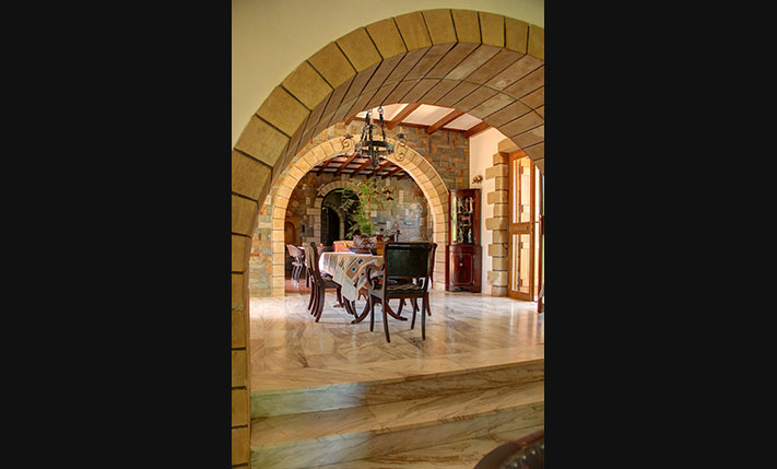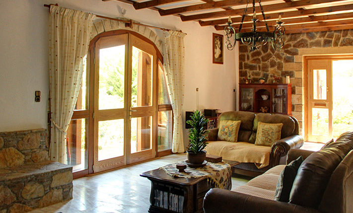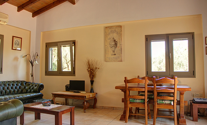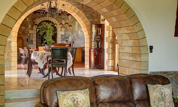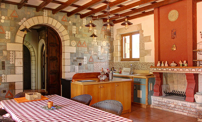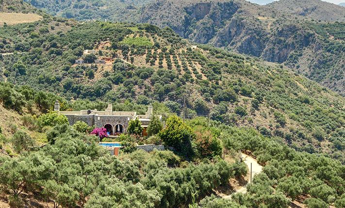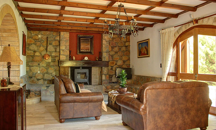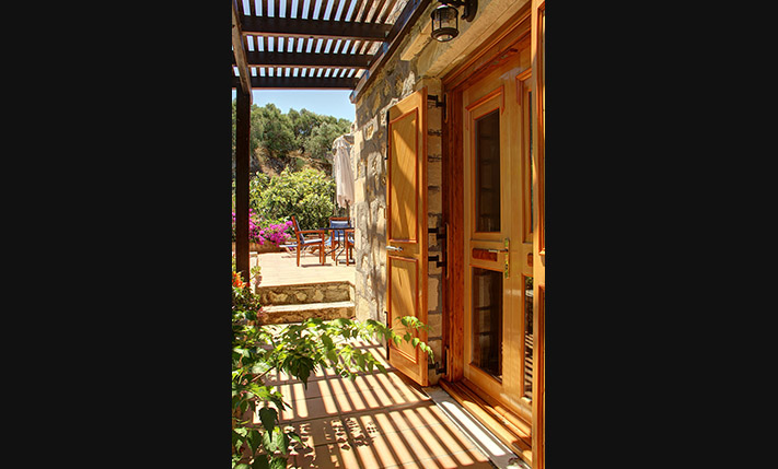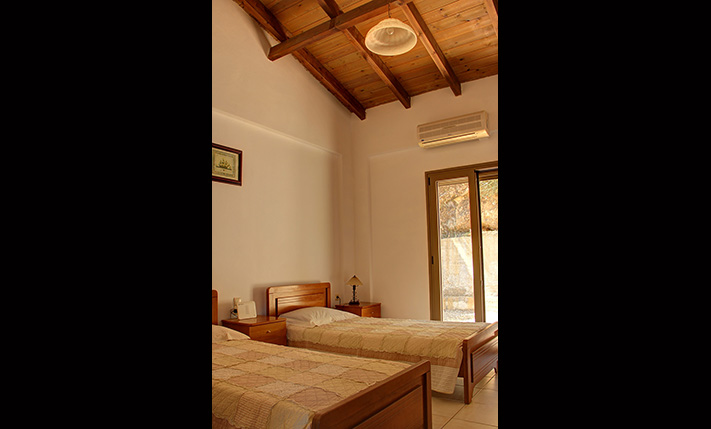 The property consists of a large stone villa of 190 m² and a smaller home of 95 m². The two residences were built on a plot of 6, 277 m², in front of which a plot of about 3, 900 m² was purchased, in order to ensure unobstructed views. Although they are built on the same plot, the two houses are about 50 m apart and there is no visual contact with each other. Outside each home a part of the external areas has been landscaped, where it was necessary while in the rest of the area there are more than 200 large productive olive trees. Both houses are ground floor and completely independent. In the smaller one there are two bedrooms and two bathrooms while in the large two bedrooms and a bathroom.