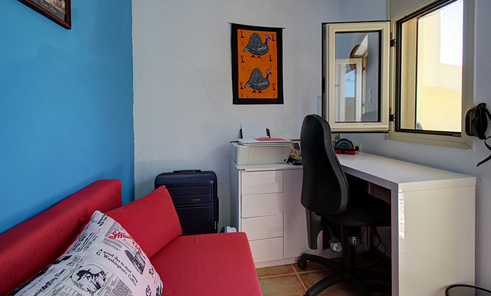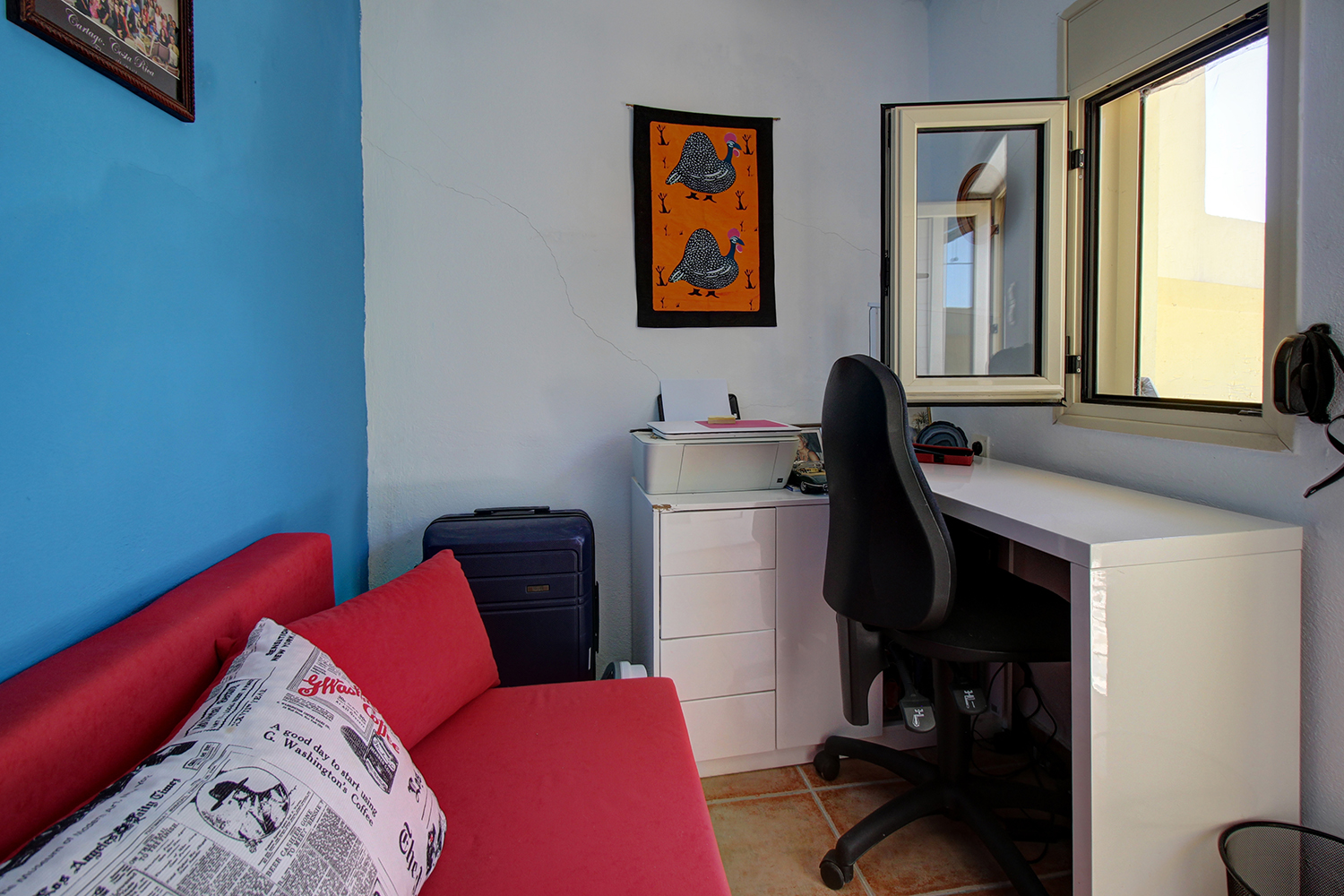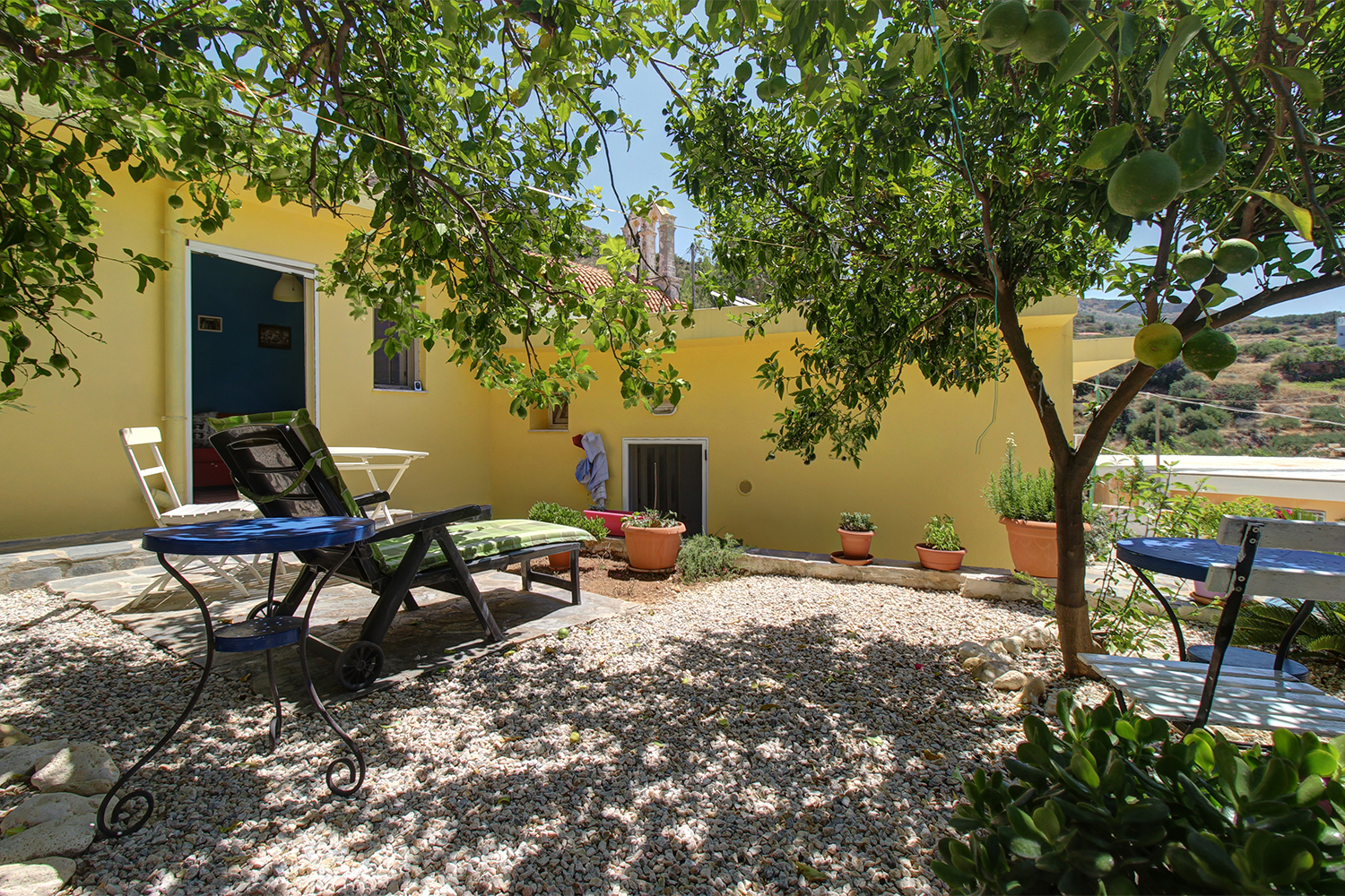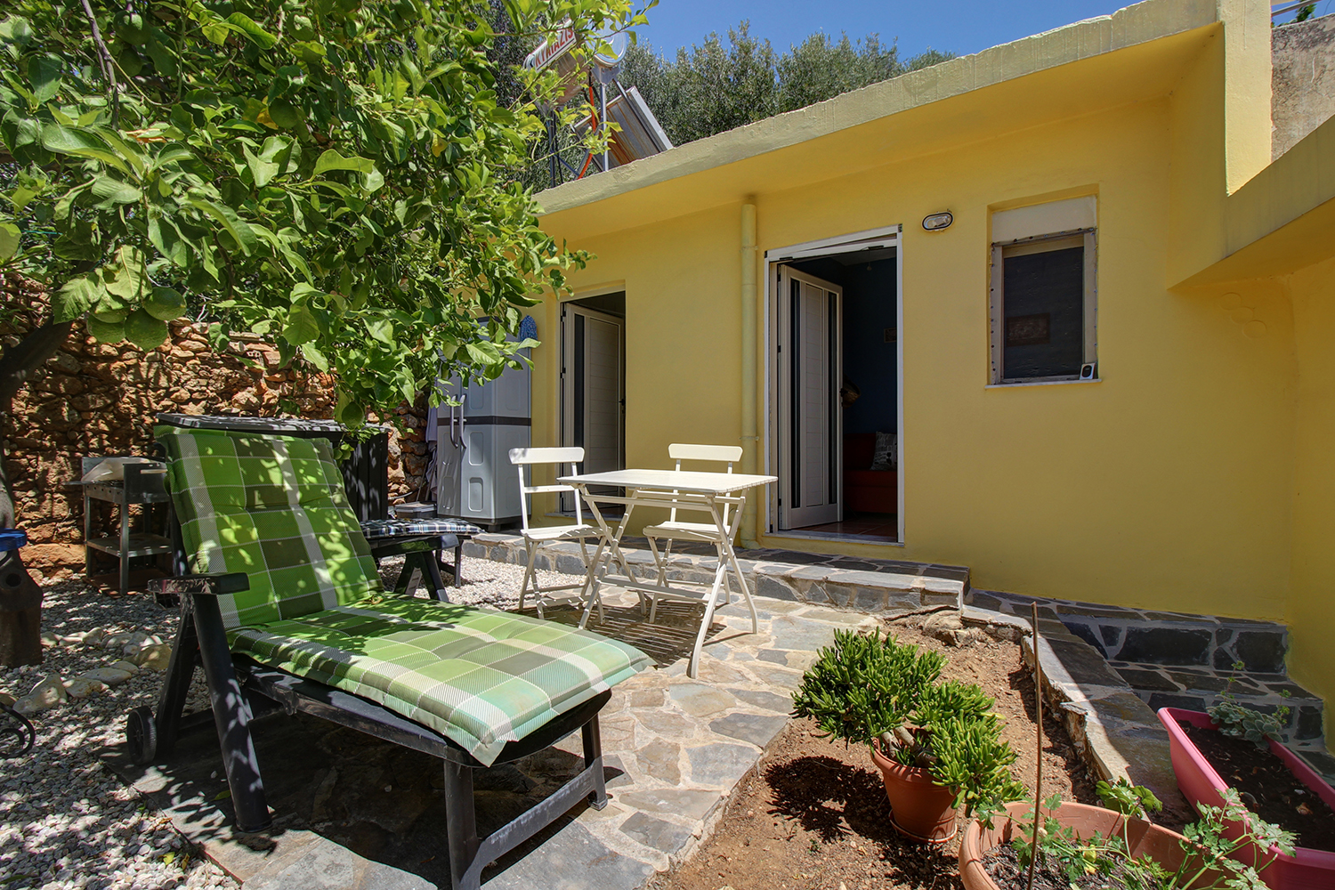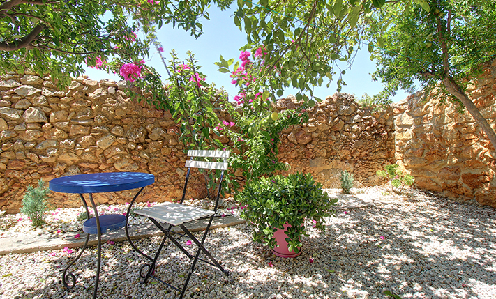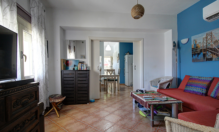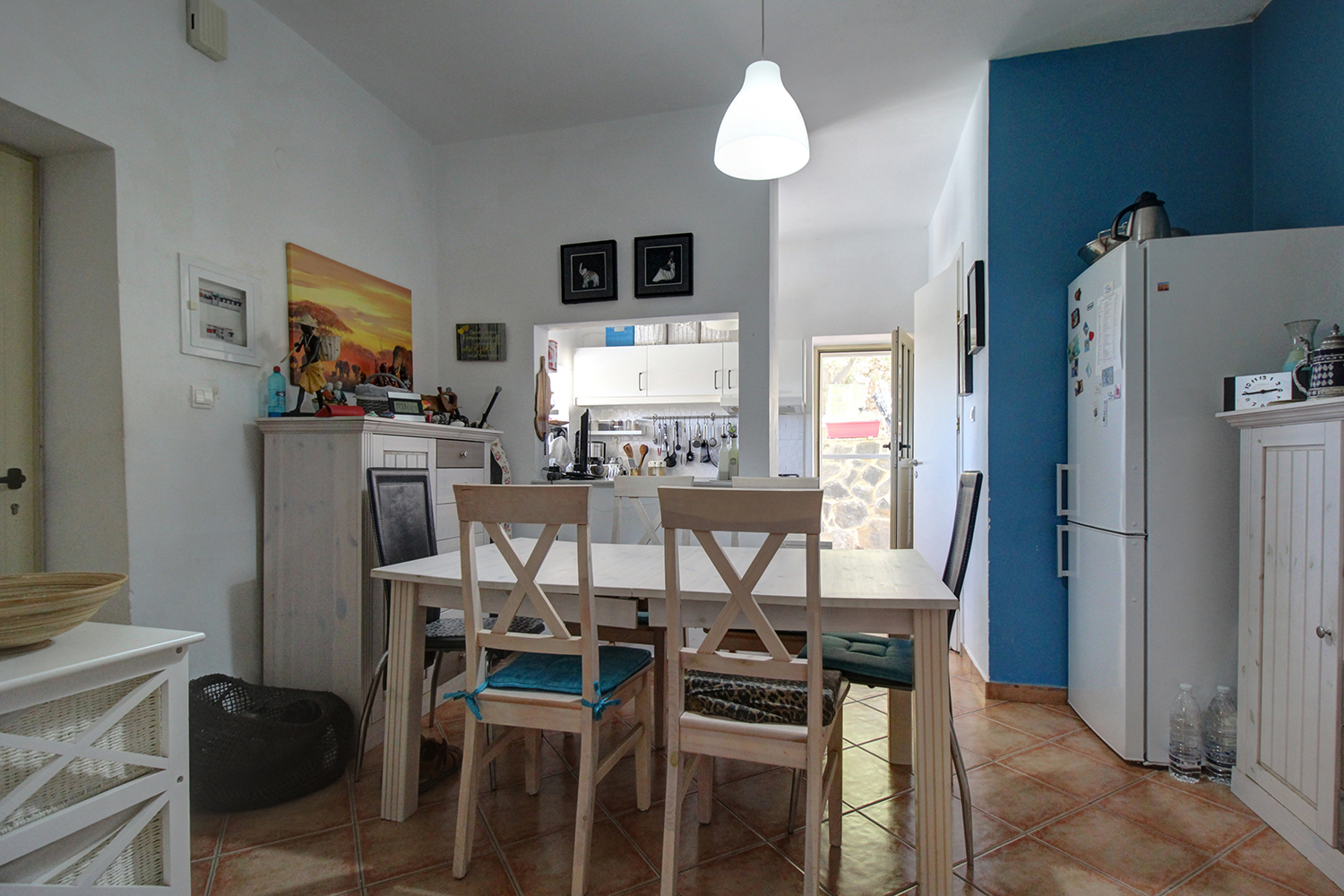 The building is ground floor and the plot is elevated and has a dry-stone wall around it. It consists of two parts and the main residence occupies 88 m². A 17 m² second part is adjacent but has independent access through the courtyard. The property has a northwest orientation and from several points the views are beautiful up to the bay of Souda in the background. In front of the residence we find a good-sized stone-paved yard and a well. A beautiful garden has been created between the two independent parts of the building. On the back side of the building 2-3 steps lead to the rooftop terrace that offers unobstructed views over the city, which can become an impressive and functional space, if you configure it properly. The back side of the property is adjacent to a small picturesque square, which is accessible by your vehicle. You can park either there or at a distance of about 40 m away, where there is a wide road.