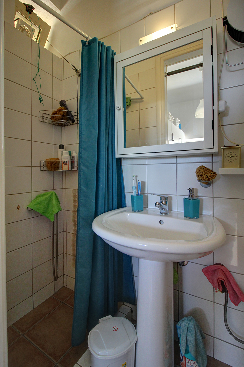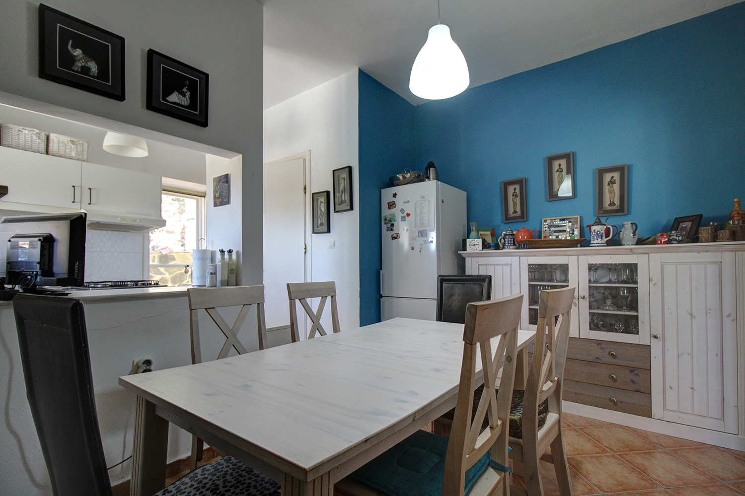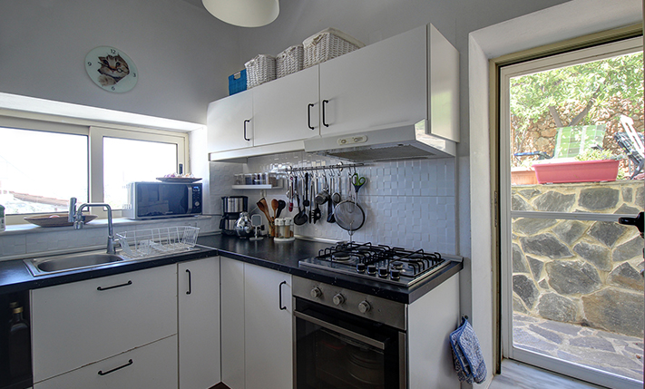 The main building follows the traditional layout of the local farmhouses, according to which all the spaces are connected to each other and are in a row. From southwest to northeast, we find the bedroom, the living space, the dining room, the kitchen, as well as a bathroom with a shower. The second building includes two rooms. One is used as an office and the second is a large bathroom. Each one is accessible through the garden but can be connected or become a small guest house, as they currently are.