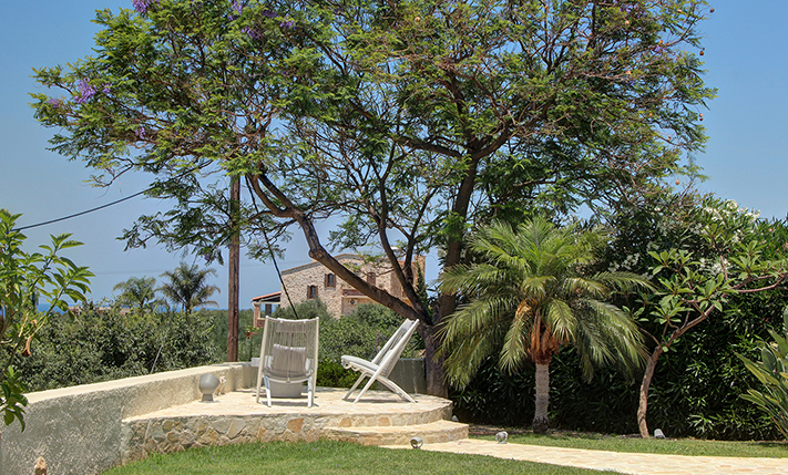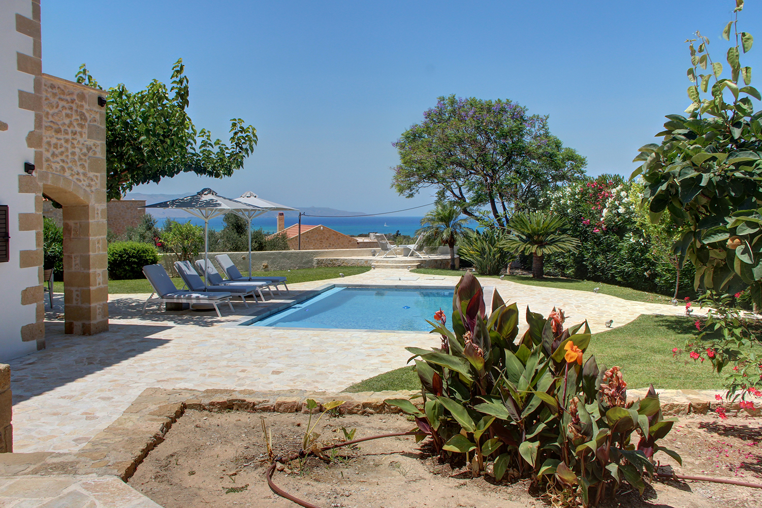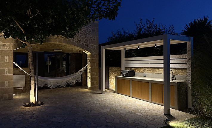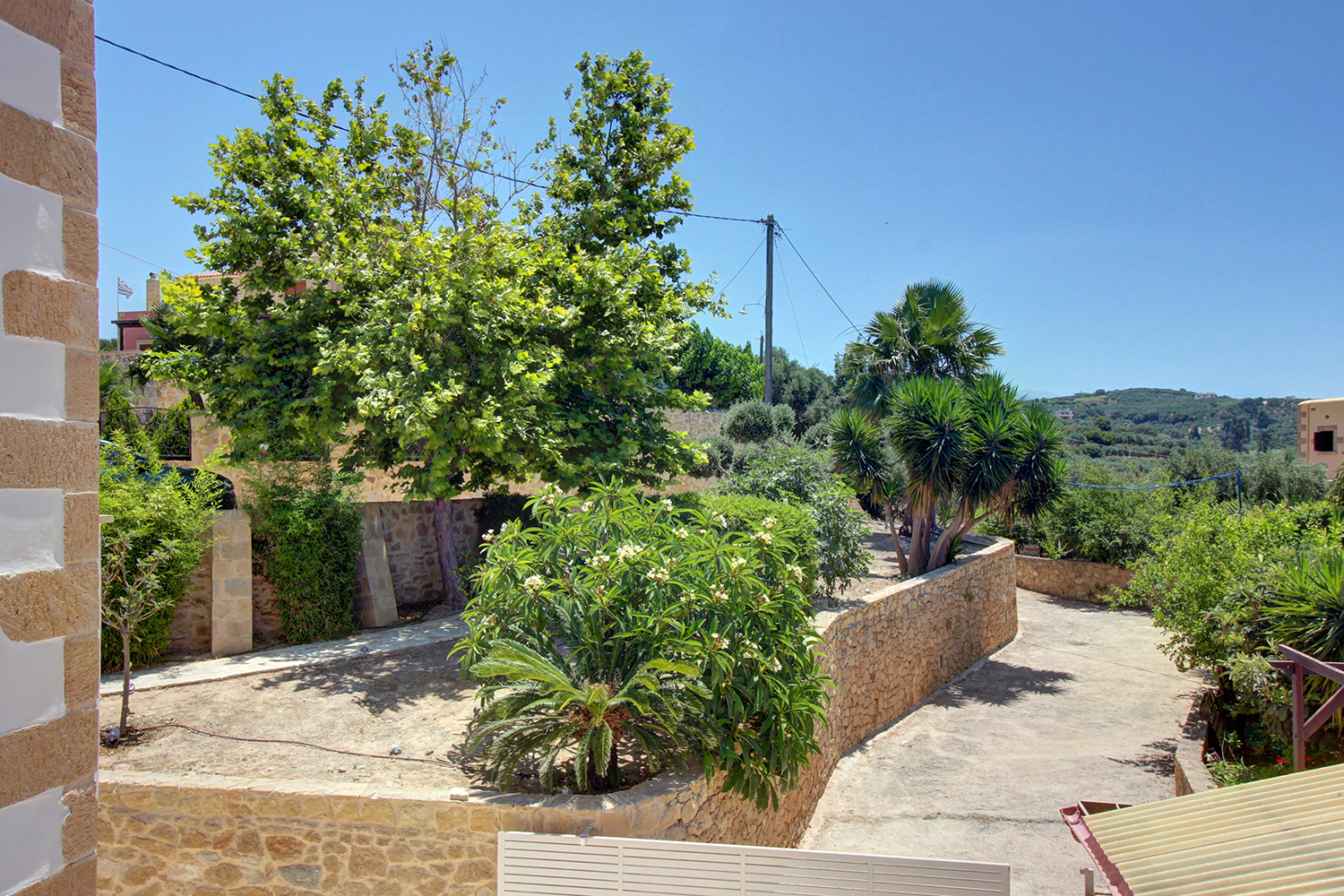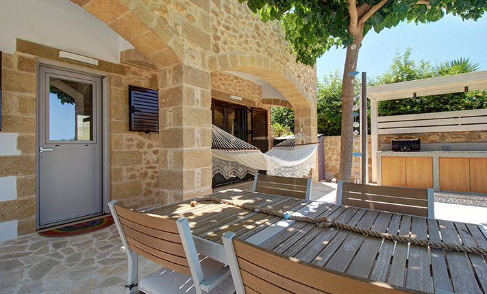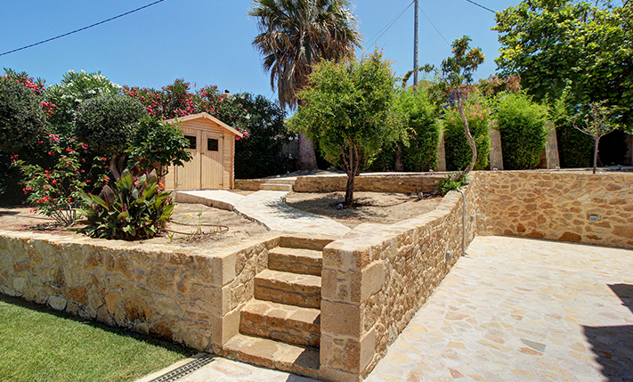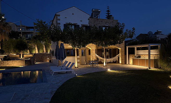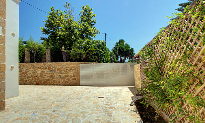 A short distance away lies the beach of Pirgos Psilonerou, which is expansive and remains relatively quiet even at the height of the tourist season. Approximately 2 km away is the village of Maleme, where one can find pharmacies, restaurants, supermarkets, and several shops operating year-round. The city and airport of Chania are approximately 25 and 35 minutes away by car, respectively.