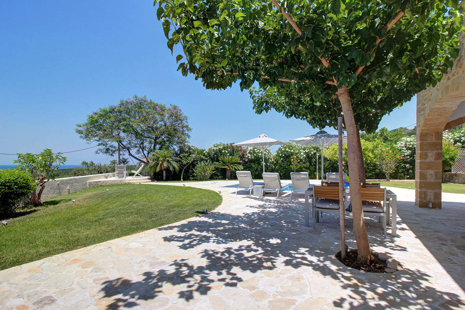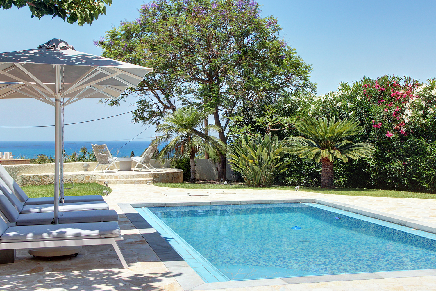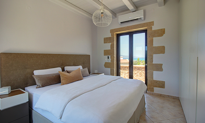 The property is of exceptional construction quality and constitutes an excellent opportunity for purchase as a permanent or holiday residence. It is located in a quiet neighborhood of the Municipality of Platanias, surrounded by olive groves and luxurious stone-built villas that form an elegant residential community. The house offers a splendid sea view even from ground level, as the plots in front of it have already been developed, thus ensuring that the view remains unobstructed. The property was fully renovated just recently, with numerous upgrades that highlighted its high-quality features. Among other things, luxurious furnishings and electrical appliances were added.
