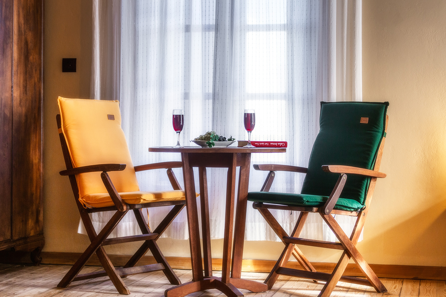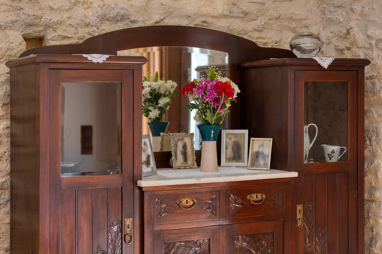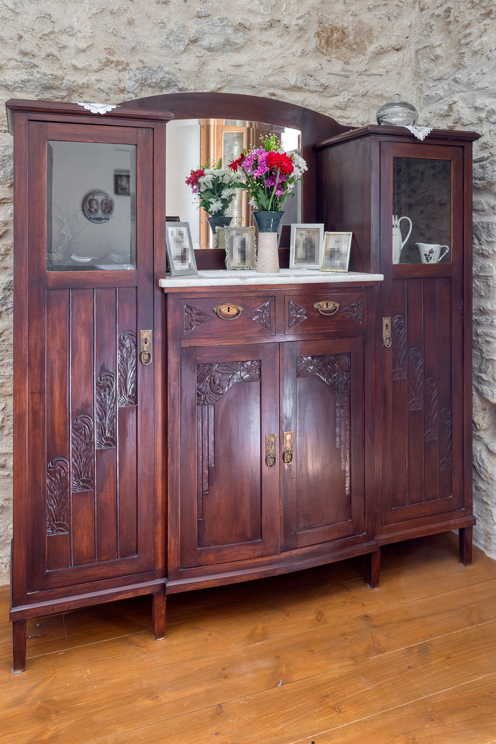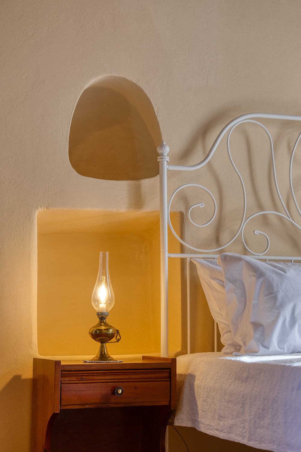 The residence is independent and has a large garden with grass, courtyards and parking spaces. It is arranged over two levels and includes a large dining area with kitchen, separate living space, three comfortable bedrooms and a total of 3 bathrooms. The kitchen has a marble sink and countertop as well as many olive wood cabinets. Many of the furniture have also been made from the same wood while many of the materials that existed before the repair have been reused, so that an impressive result with a strong traditional character has been achieved. The building has a timeless grandeur and large spaces with excellent functionality.