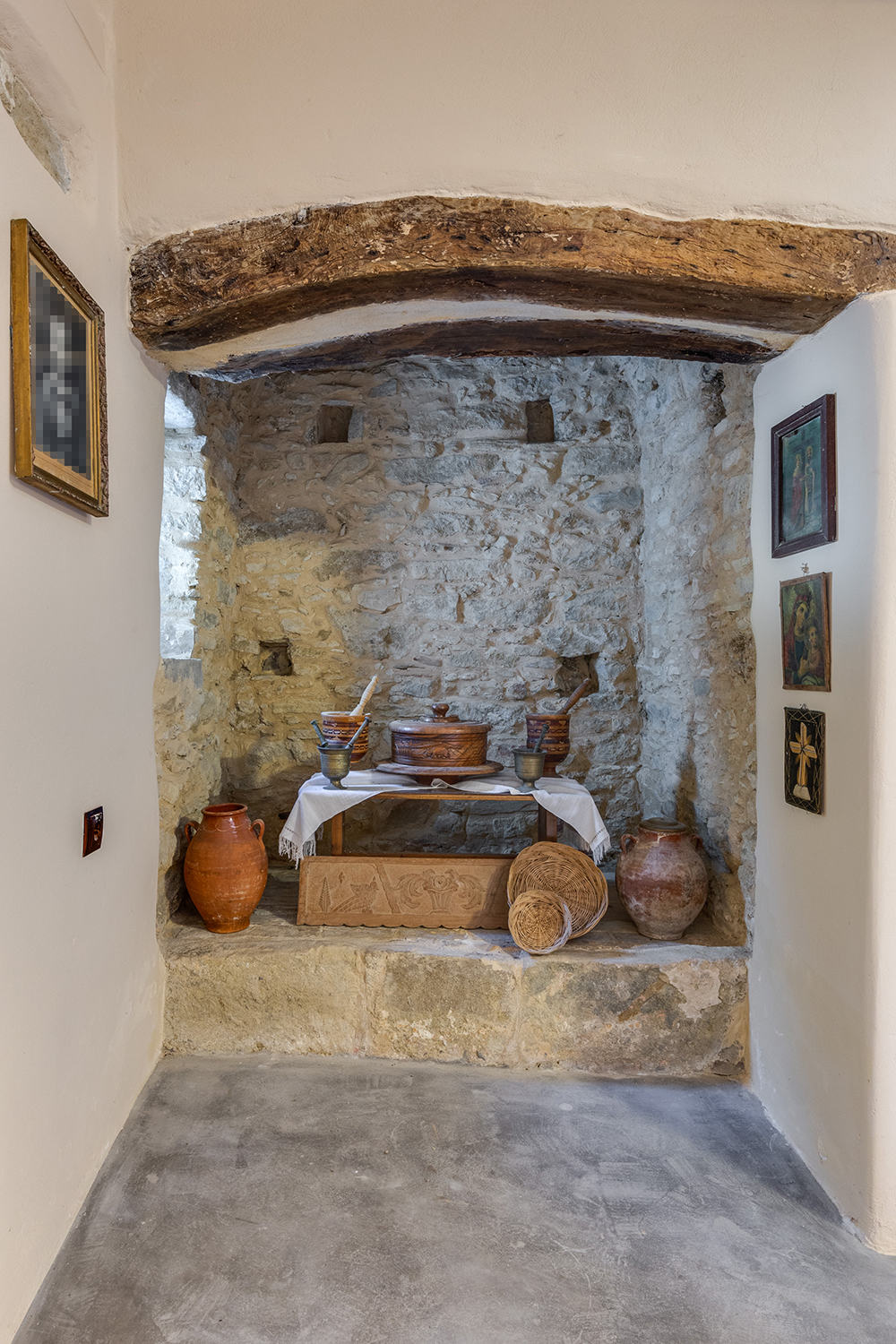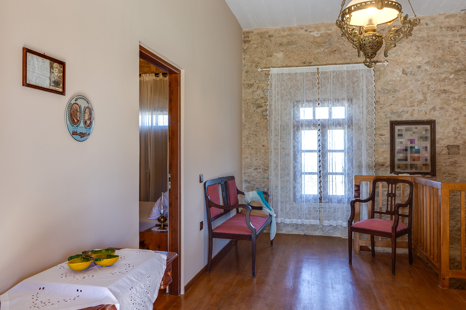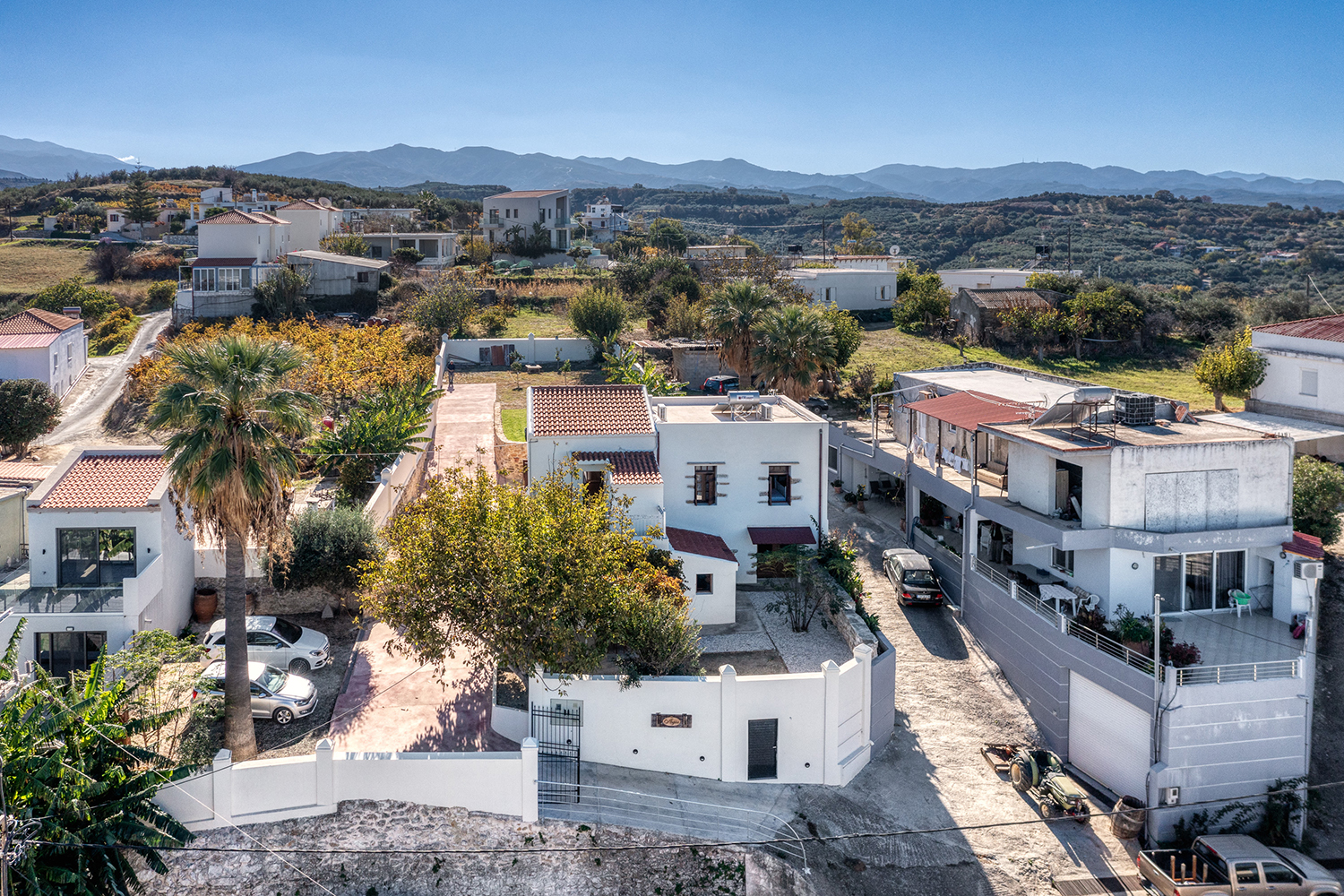 The house is an old stone mansion, which was fully repaired in the 1990s and renovated again in 2024 when modern, functional furniture and equipment were added. The village is in the municipality of Platanias and west of its center, has about 150 permanent residents and is surrounded by countless olive groves. The house was historically one of the privileged of the area and has hosted in the past Eleftherios Venizelos (prime minister of Greece for over 12 years, for several terms from 1910 to 1933) as well as the headquarters of the occupation troops during the Second World War.