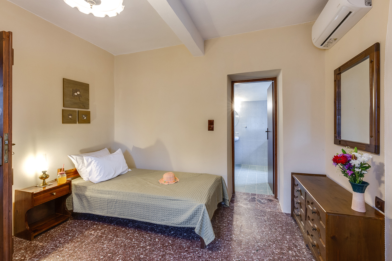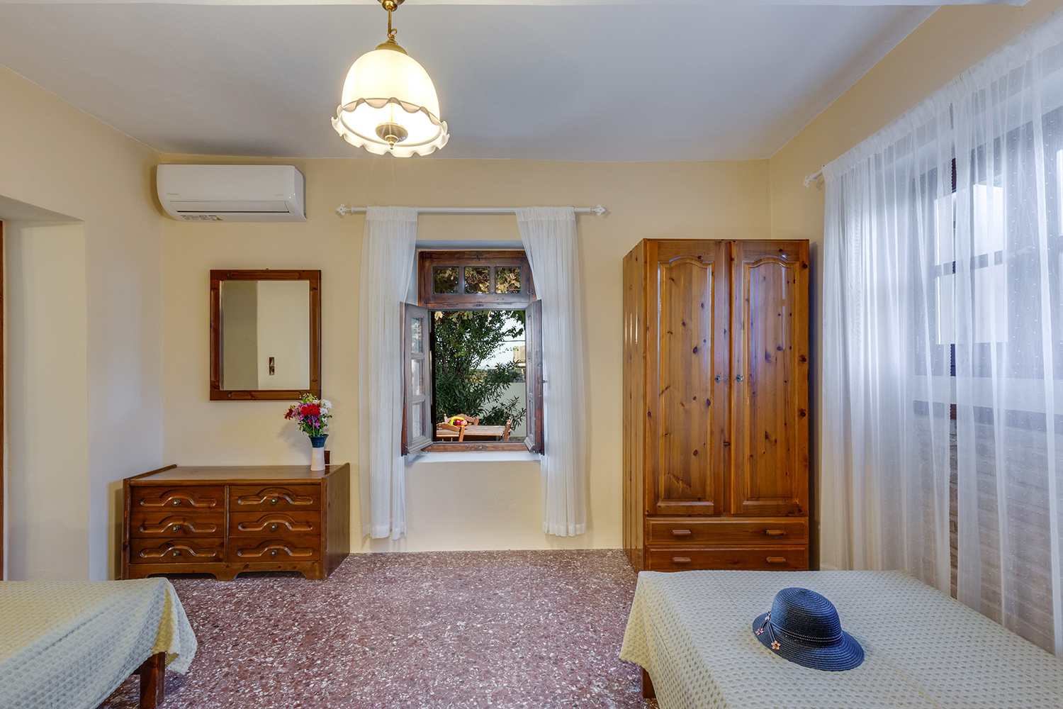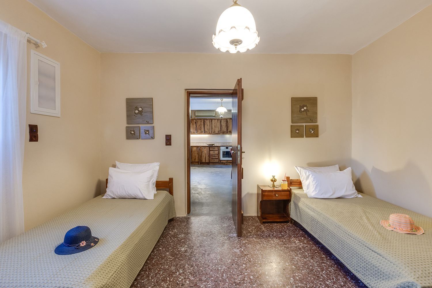 Within a radius of up to 5 km you will find supermarkets, taverns, cafes and many more, various types of shops. The beach of Maleme, which has sand and pebbles, is 4 km away. Along it, there are paved pedestrian roads with benches and lighting, which are ideal for walking and cycling, all year round. Chania is 25 minutes' drive and the airport of Chania about 35 minutes.