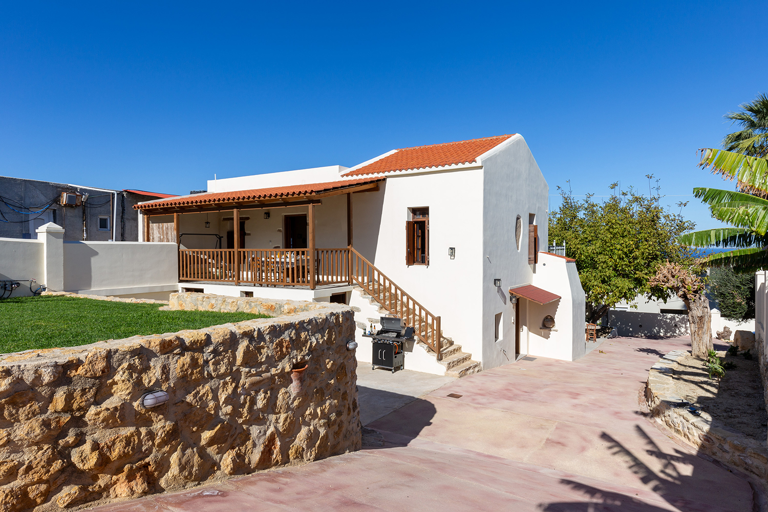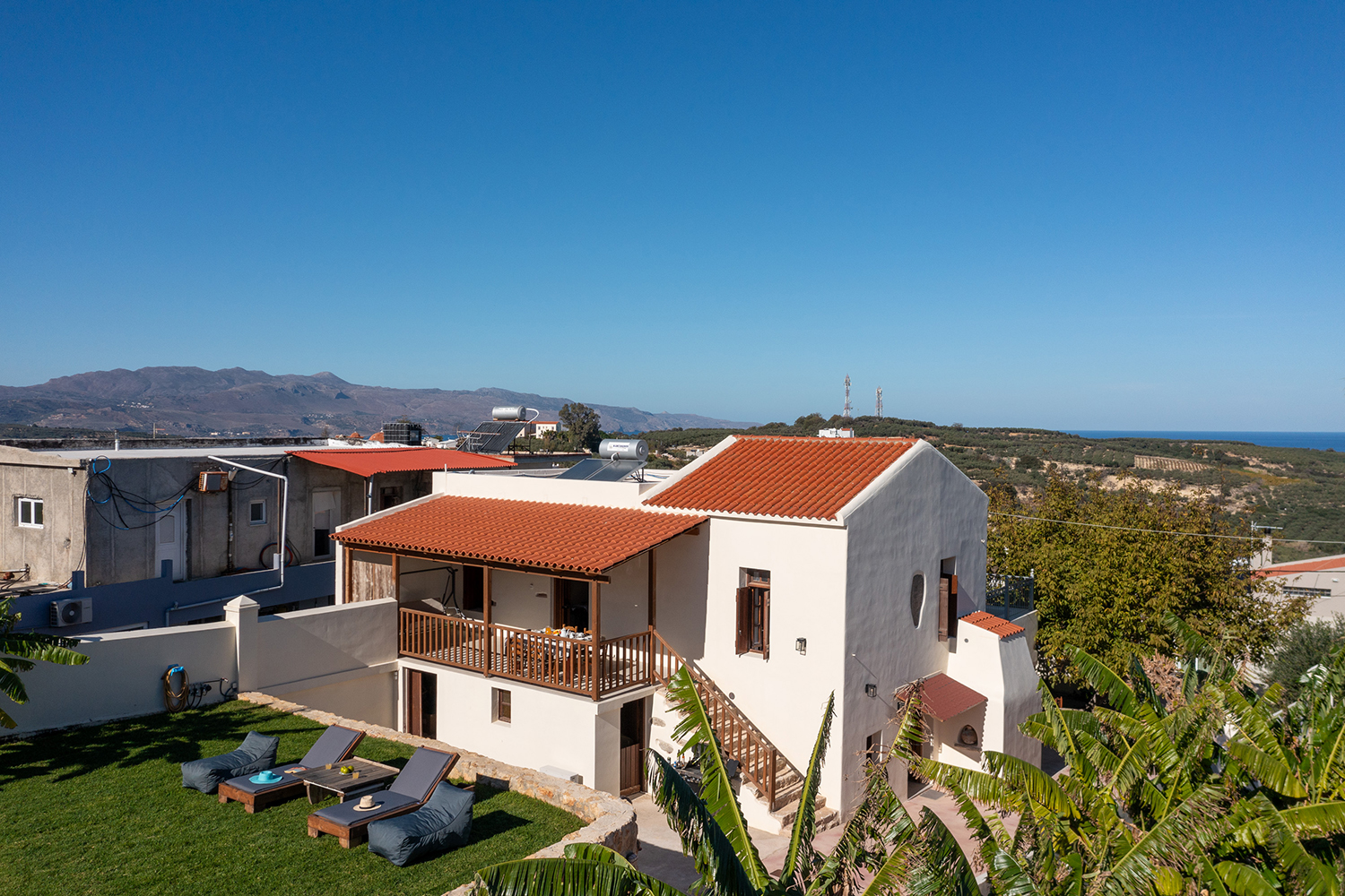 The garden has good privacy and is ideal for sunbathing while it has beautiful views to the sea from almost all points. The residence has air conditioning in all areas as well as all the electrical appliances, which include washer-dryer and dishwasher. The property can give you a strong taste of Cretan architecture and tradition, without losing anything from the modern lifestyle.