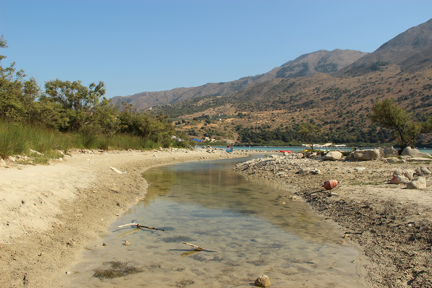 Following the signs for about 4 km after the beach of Georgioupolis towards Rethymnon, you will find yourself on the northeast side of the lake. During the summer months the water recedes, leaving space for a long beach which has umbrellas and sunbeds. Along the shore you will find souvenir shops, cafés and plenty of traditional taverns which are popular for their excellent food.