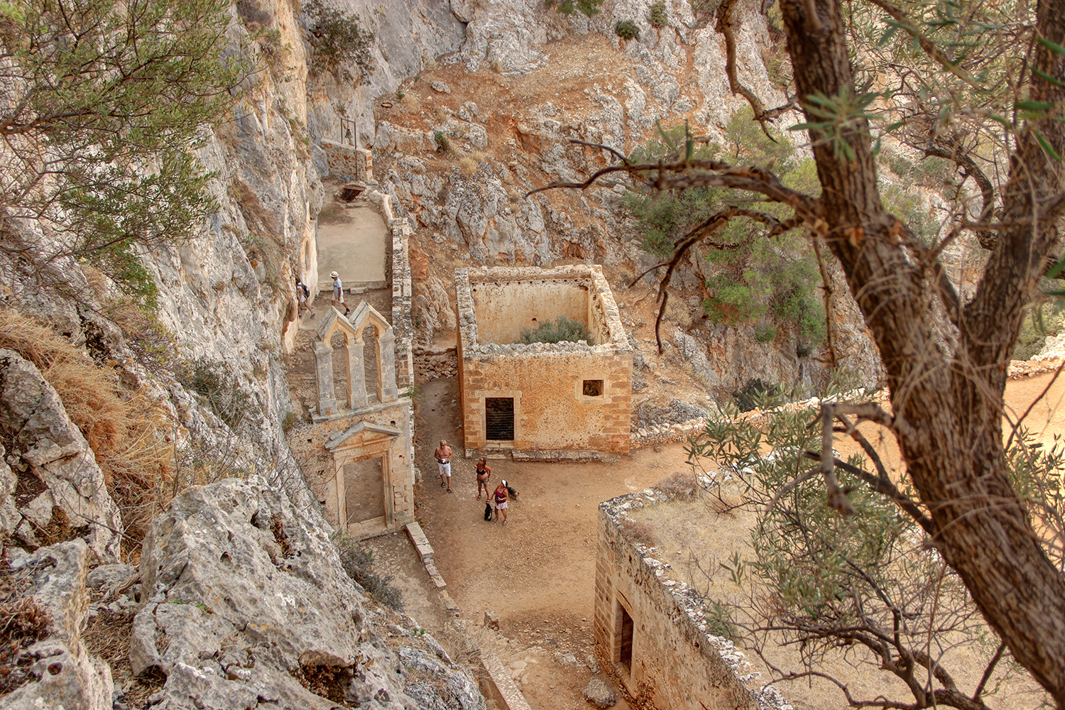 After walking along the path for about 600 meters there is the small church of Ipapanti. Next to it is the cave of Panagia Arkoudiotissa, in the centre of which there is a stalagmite in the form of a stooping bear. A legend says that the Virgin Mary turned the bear into rock as it was drinking the water of the monks. The cave has been used as a place of worship for many centuries, as there have been found inscriptions dedicated to the god Apollo and the goddess Artemis. Approximately in the middle of the path you will find the abandoned monastery of Saint John the Hermit that dates from the 17th century and is popularly known as Katholiko. Next to the monastery is the cave, where Saint John the Hermit lived in asceticism. The cave is about 100 m deep and you should have a flashlight if you are planning to explore it.