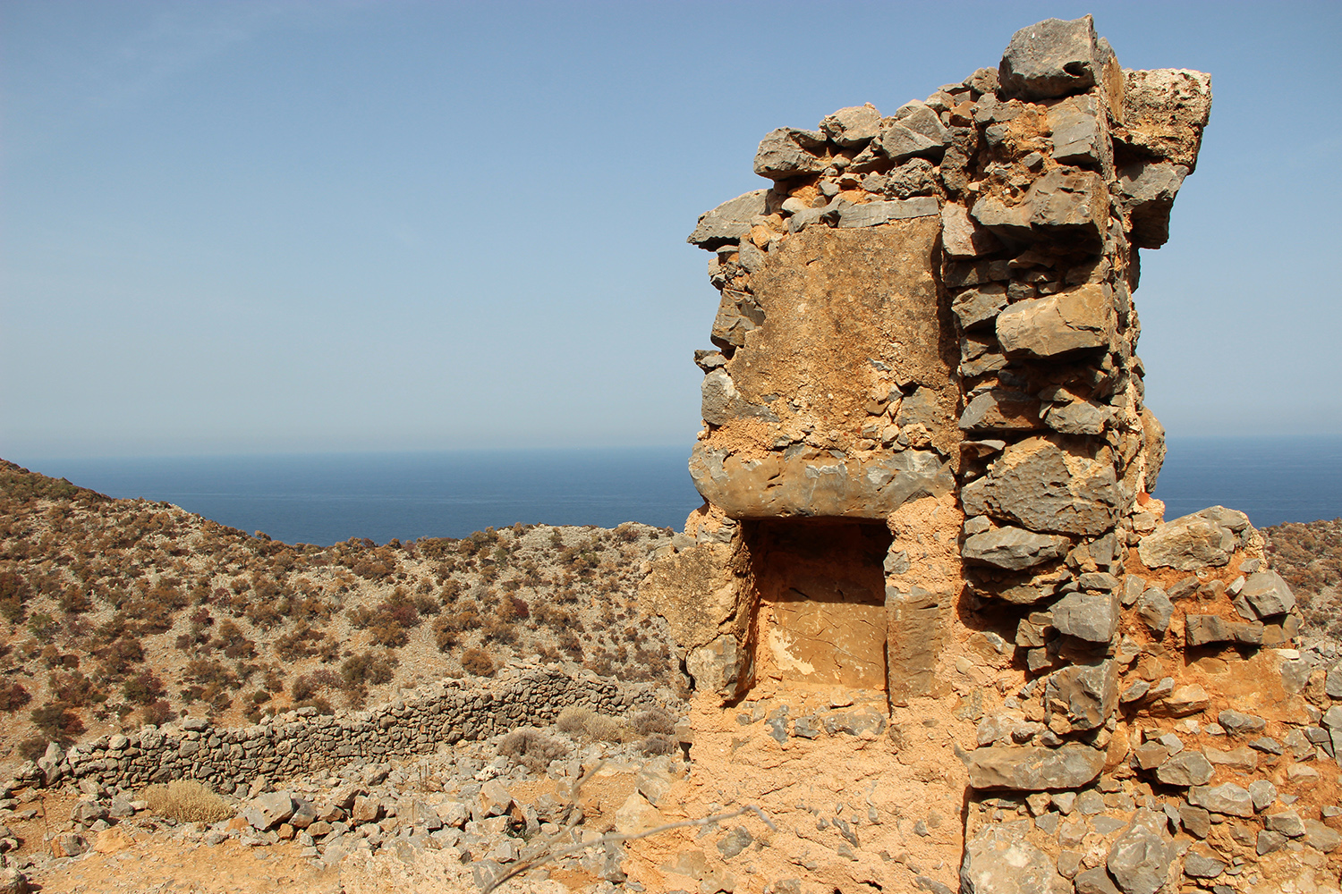 The pathway continues across Avlaki Gorge, where there are many caves in the slopes that have been used as shelters by hermit monks in the past. After about 15 minutes you will reach a small fjord with turquoise waters. Next to the sea you will find the remains of the old quarry of the monastery, as well as a small abandoned port. The return is sharply uphill and requires either good physical condition or enough patience and plenty of resting stops. You should also bring along enough water, especially during summer months.