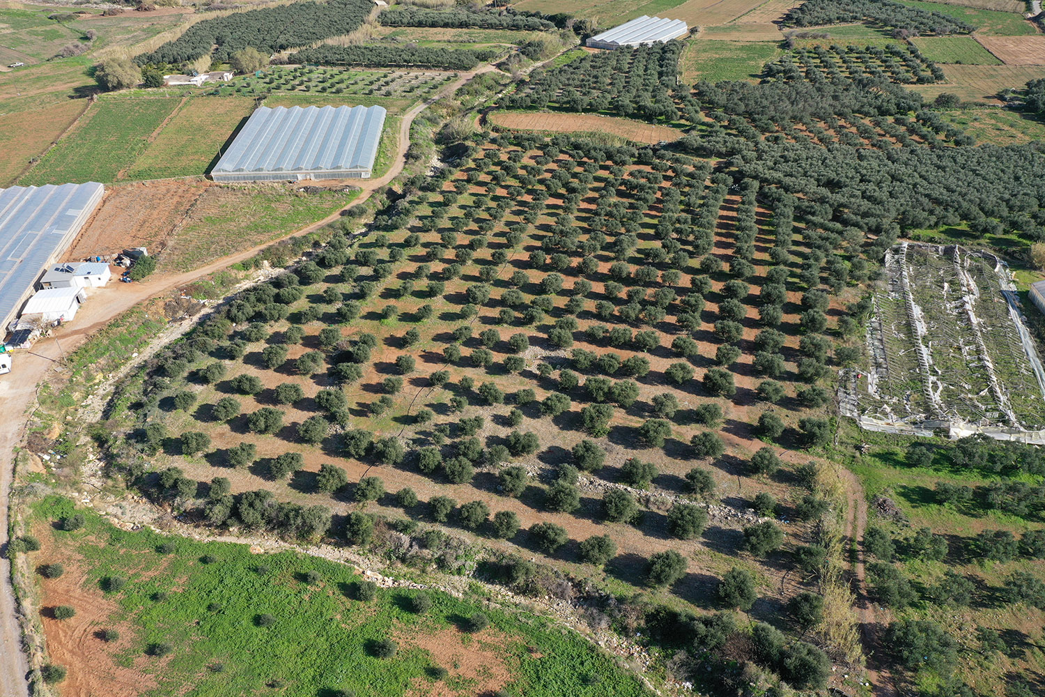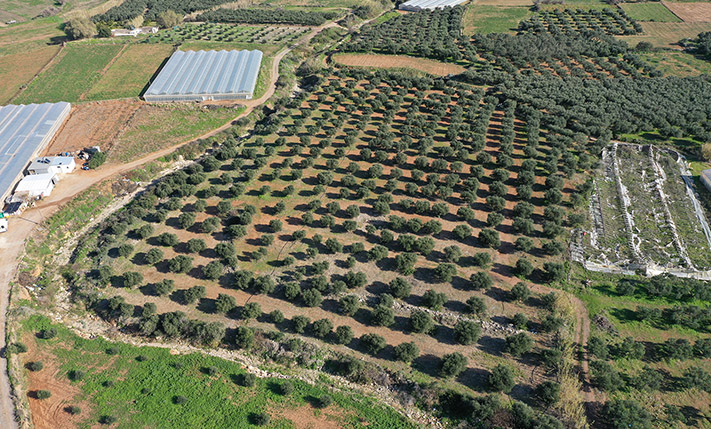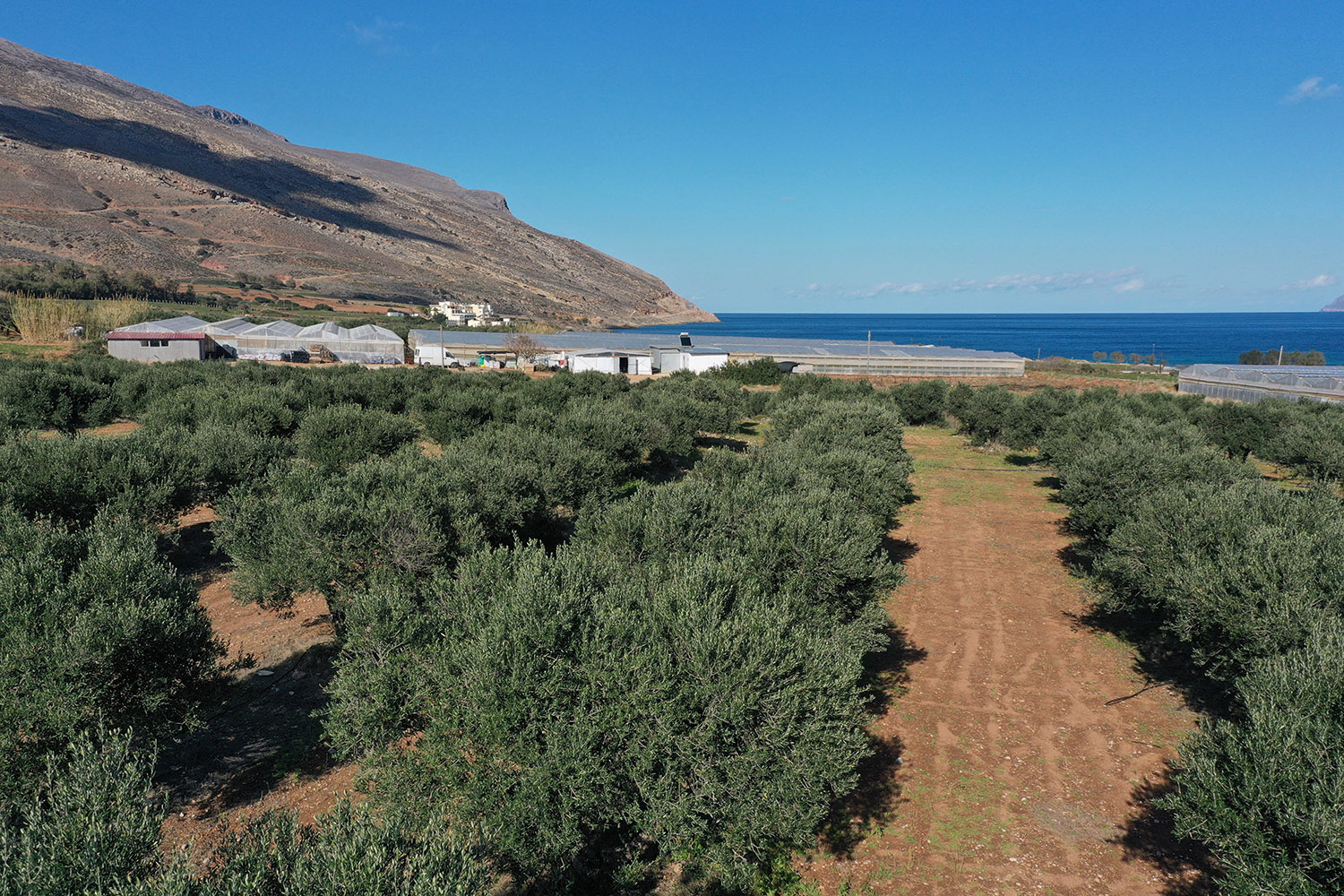 Το ακίνητο βρίσκεται λίγο έξω από τον οικισμό της Καλυβιανής, σε απόσταση περίπου 6 km από το κέντρο της κωμόπολης της Κισσάμου. Είναι, επίσης, σε απόσταση ενός σύντομου περιπάτου από την όμορφη παραλία της περιοχής και μόλις 350 m σε ευθεία γραμμή. Πρόκειται για μία καλλιεργήσιμη έκταση επάνω στην οποία υπάρχουν περίπου 330 παραγωγικά ελαιόδεντρα, τα οποία είναι σε ώριμη ηλικία και σε πολύ καλή κατάσταση. Στη βόρεια πλευρά υπάρχει πρανές, το οποίο σε συνδυασμό με το μέγεθος της έκτασης διασφαλίζει εξαιρετική θέα στη θάλασσα και πολύ καλή ιδιωτικότητα. Υπάρχει πρόσβαση από δύο ξεχωριστούς αγροτικούς δρόμους ενώ υπάρχει δρόμος με άσφαλτο μόλις σε 50 m. Η έκταση απαρτίζεται από τρεις παρακείμενες ιδιοκτησίες που σχηματίζουν ένα ενιαίο τεμάχιο με καλό, σχεδόν ορθογώνιο σχήμα και μέσες διαστάσεις περίπου 140 m * 110 m.