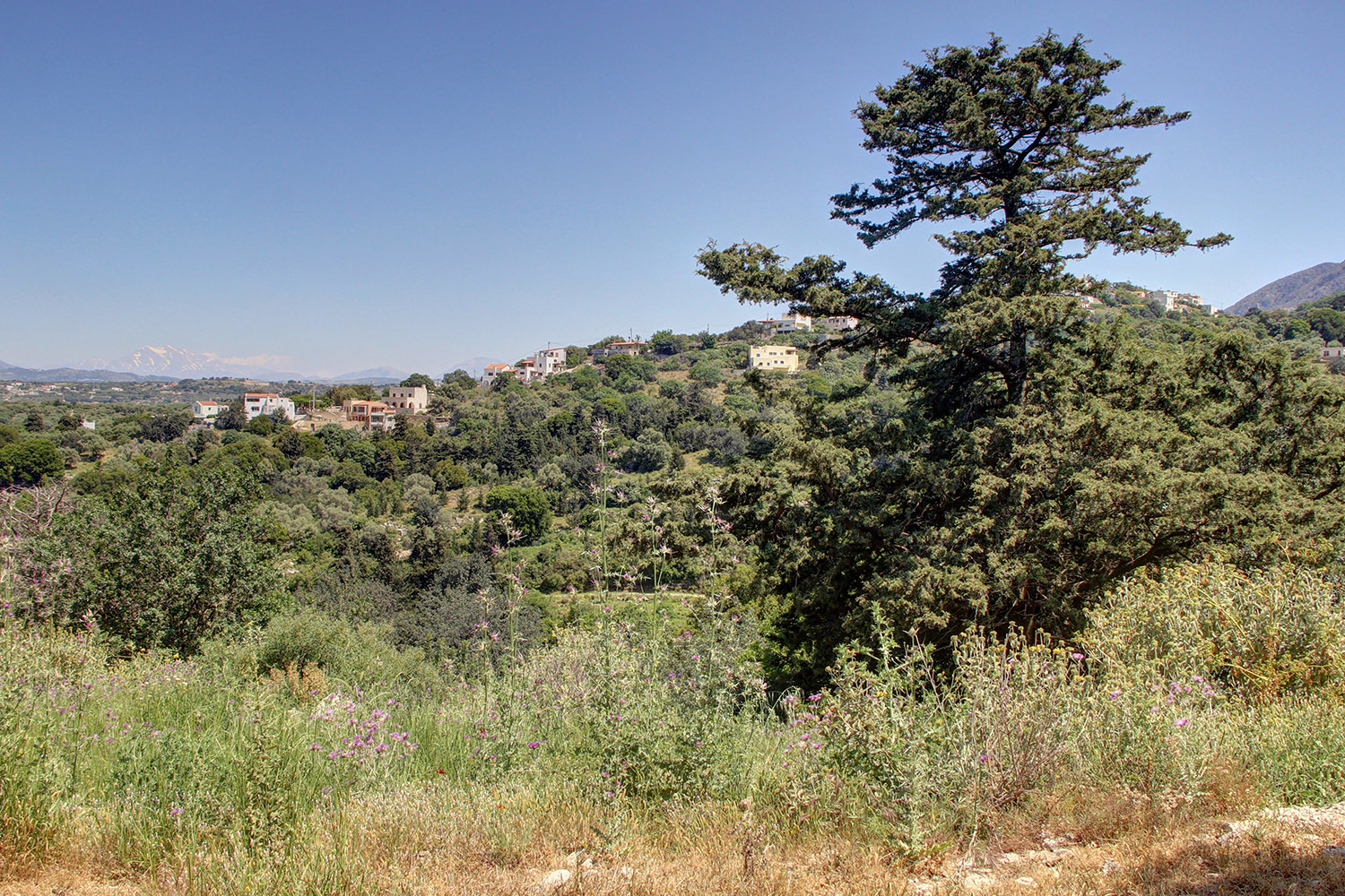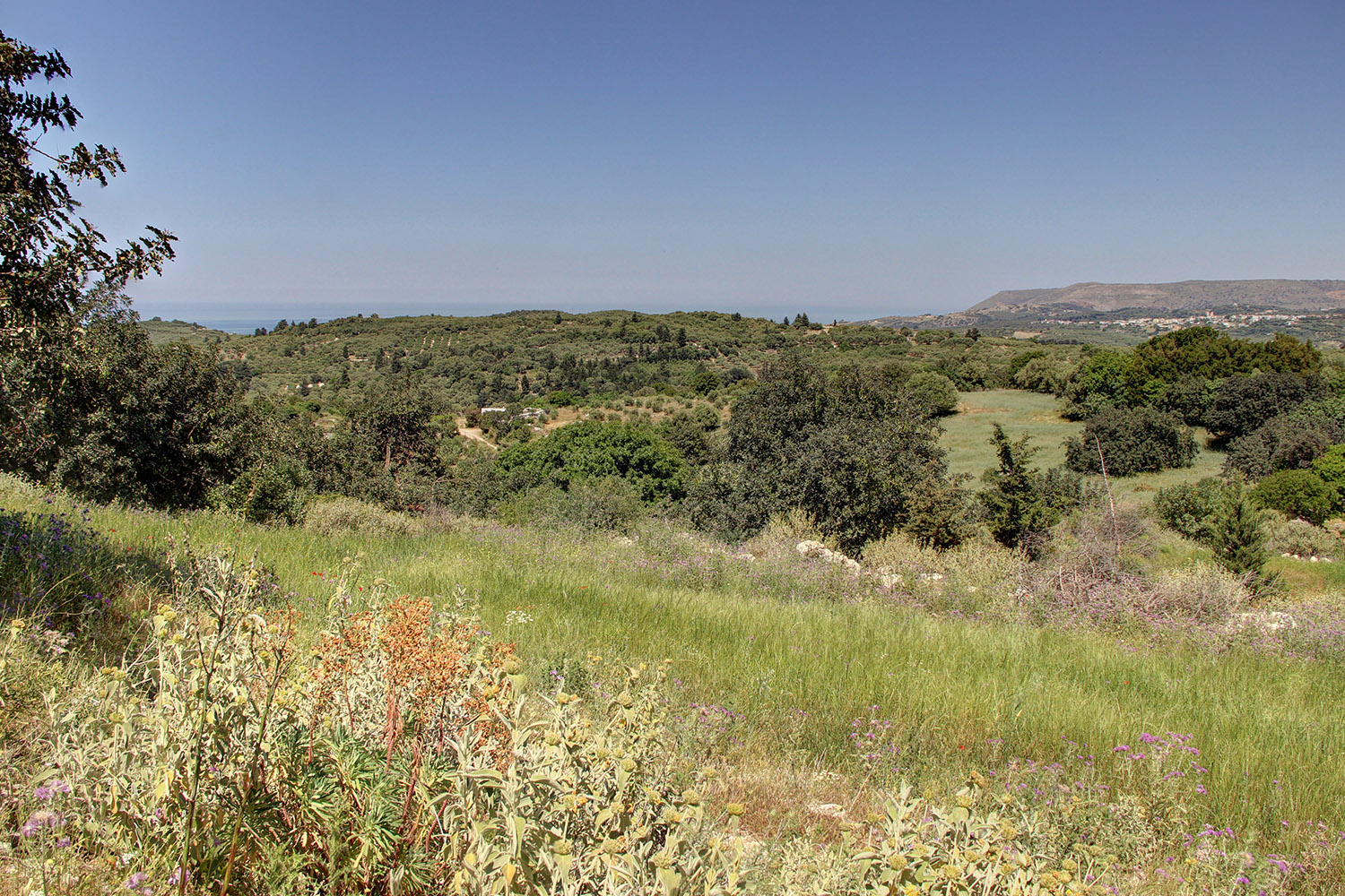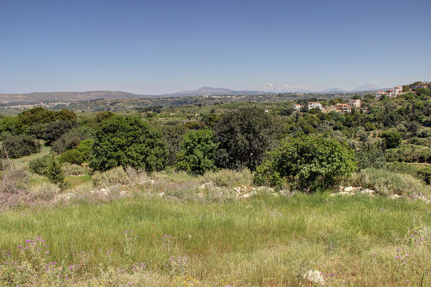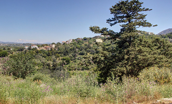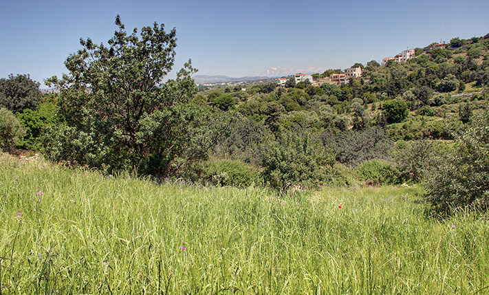 Το οικόπεδο είναι χέρσο κατά το μεγαλύτερο μέρος του ενώ υπάρχουν και κάποια μεγάλα δέντρα όπως χαρουπιές, κυπαρίσσια και άλλα. Το έδαφος έχει ελαφριά κλίση με νοτιοανατολικό προσανατολισμό και στο χαμηλότερο σημείο φτάνει ένας αγροτικός δρόμος, από όπου υπάρχει εύκολη πρόσβαση σε δρόμο με άσφαλτο στα 50 m. Η τοποθεσία είναι εξαιρετική και η θέα είναι εντυπωσιακή προς όλες τις κατευθύνσεις, προς τα γραφικά κοντινά χωριά και τους κατάφυτους γύρω λόφους καθώς και μέχρι την κορυφή του Ψηλορείτη αλλά και τη θάλασσα από τη βόρεια πλευρά. Το οικόπεδο αποτελεί μία αδιαμφισβήτητα εξαιρετική επιλογή για την κατασκευή πολυτελούς βίλας με θέα μέσα στη φύση.