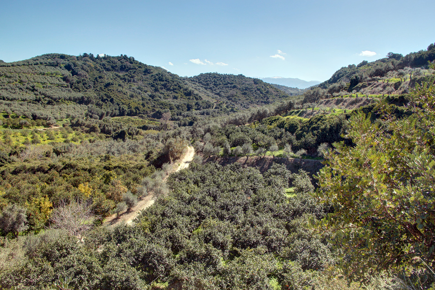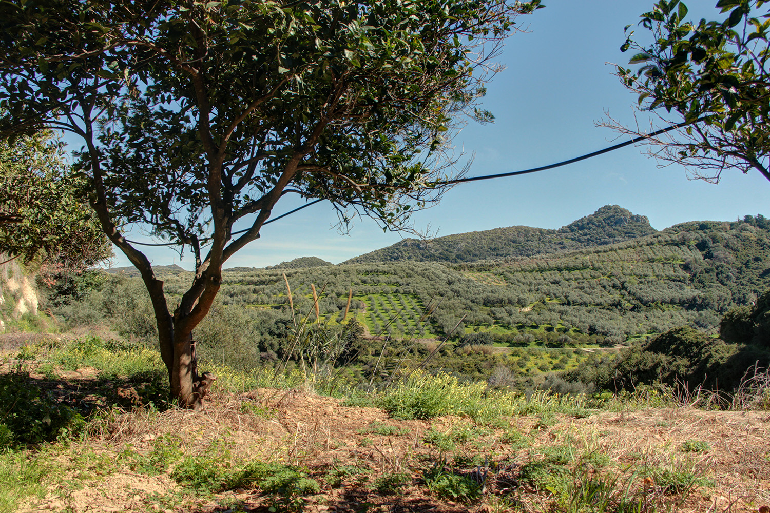 Η ιδιοκτησία είναι σε ένα εξαιρετικά ήσυχο σημείο και περιβάλλεται από πορτοκαλιές και αμέτρητους ελαιώνες. Πρόκειται για μία αγροτική έκταση, η οποία έχει ανατολική κλίση και είναι χωρισμένη σε μεγάλες επίπεδες αναβαθμίδες. Υπάρχουν 130 ώριμα ελαιόδεντρα, 340 πορτοκαλιές και 10 παραγωγικά αβοκάντο. Τα δέντρα είναι σε εξαιρετική κατάσταση και μπορούν να σας αποφέρουν ένα σημαντικό ετήσιο εισόδημα. Μεταξύ των αναβαθμίδων υπάρχουν μεγάλα πρανή που διασφαλίζουν ανεμπόδιστη θέα. Ως εκ τούτου, σε κάποιο από τα υψηλότερα σημεία μπορείτε να κατασκευάσετε μία μεγάλη κατοικία, η οποία θα βλέπει προς τα βουνά και μέχρι τη θάλασσα και τη νήσο των Αγίων Θεοδώρων.