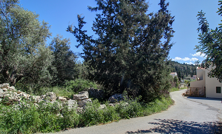 Το οικόπεδο είναι σε προνομιακή θέση μεταξύ των οικισμών του Βάμου και της Αλμυρίδας. Βρίσκεται σε μία πλαγιά με ήπια δυτική κλίση και ένα δρόμο κατά μήκος της χαμηλότερης στάθμης του. Υπάρχουν ένα παραδοσιακό πέτρινο αλώνι, κάποια ελαιόδεντρα καθώς και μεγάλα κυπαρίσσια, τα οποία έχετε τη δυνατότητα να αφαιρέσετε εφόσον απαιτείται για να εξυπηρετήσετε την όποια κατασκευή. Το σημείο είναι εύκολα προσβάσιμο και παρακείμενα του οικοπέδου υπάρχουν κυρίως εξοχικές κατοικίες και πολυτελή συγκροτήματα. Το οικόπεδο αποτελεί ιδανική επιλογή για την κατασκευή και μεμονωμένη μεταπώληση αυτοτελών κατοικιών με άνετο εξωτερικό χώρο για κάθε μία. Από όλα τα σημεία η θέα είναι εξαιρετική προς τα Λευκά Όρη και φτάνει μέχρι τη θάλασσα στο βάθος, σε περίπτωση που κατασκευαστεί επάνω όροφος.