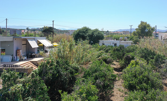 Το οικόπεδο είναι σε μια προνομιακή θέση, πολύ κοντά στη θάλασσα. Βρίσκεται σε έναν πολύ γνωστό τουριστικό προορισμό του δήμου Πλατανιά, σε μία καλή περιοχή με οικονομική ανάπτυξή και υψηλά περιθώρια μελλοντικής υπεραξίας. Η περιοχή οικοδομείται βάση πολεοδομικού σχεδίου, το οποίο έχει καταργηθεί αλλά ακολουθούνται οι γραμμές δόμησης που είχαν καθοριστεί. Το τωρινό εμβαδό του οικοπέδου είναι 2,577 m². Μετά την πράξη εφαρμογής του σχεδίου και εφόσον αυτό επανέλθει στην ίδια μορφή, απομένει ένα ορθογώνιο τμήμα με μεγάλες προσόψεις, κατά μήκος της βόρειας, της ανατολικής και της νότιας πλευράς. Η νότια πρόσοψη σήμερα εφάπτεται στην παλαιά εθνική οδό Χανίων-Κισσάμου ενώ ανάμεσα σε αυτό το δρόμο και το οικόπεδο το σχέδιο προβλέπει την κατασκευή πλατείας. Το έδαφος είναι επίπεδο. Περίπου στο μισό της έκτασης υπάρχουν μεγάλες παραγωγικές πορτοκαλιές ενώ το υπόλοιπο είναι χέρσο. Το ακίνητο είναι αρκετά μεγάλο και μπορείτε να το εκμεταλλευτείτε για επαγγελματικούς λόγους αλλά και για προσωπική σας χρήση. Θα μπορούσατε να κατασκευάσετε πολυτελείς βίλες, τουριστική μονάδα ή ένα συγκρότημα μικτής ή αμιγώς επαγγελματικής χρήσης. Μαζί με το οικόπεδο μπορείτε να αγοράσετε και παρακείμενη ιδιοκτησία με παρόμοια χαρακτηριστικά. Όταν το σχέδιο επανέλθει, το οικόπεδο θα οικοδομείται με συντελεστή, γεγονός που θα αυξήσει σημαντικά τη δυνατότητα δόμησης και καθιστά το ακίνητο μία πολύ καλή τοποθέτηση χρημάτων.