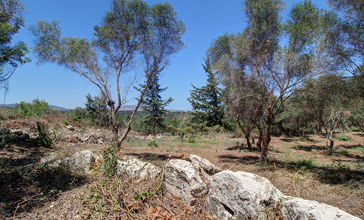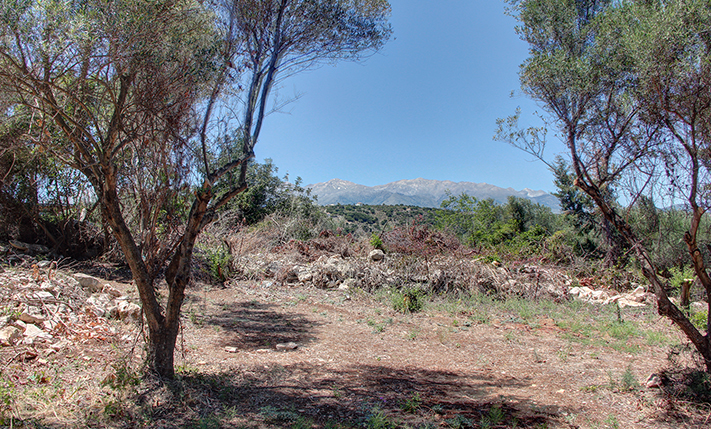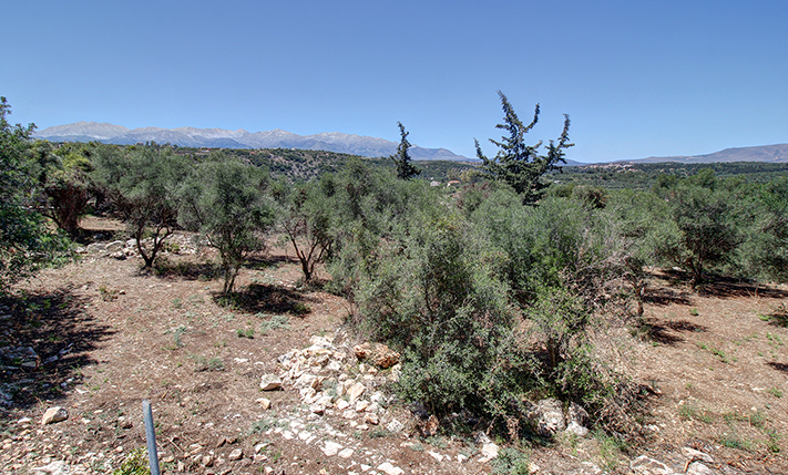 Το οικόπεδο είναι σε μία όμορφη κωμόπολη του Αποκόρωνα με πολλές υποδομές και παραδοσιακά στοιχεία. Απέχει μόλις 300 m από την κεντρική πλατεία. Είναι σε ένα εξαιρετικό σημείο που δίνει την αίσθηση ότι είναι αποκομμένο μέσα στη φύση. Το έδαφος είναι επίπεδο και υπάρχουν ώριμα ελαιόδεντρα καθώς και ένα παλαιό πέτρινο αλώνι. Η πρόσοψη του οικοπέδου είναι σε ένα δημοτικό δρόμο στη νότια πλευρά. Νότια υπάρχει πρόσοψη σε ένα παλιό μονοπάτι ενώ κατά μήκος όλης της ανατολικής πλευράς υπάρχει πρανές που μπορεί να διασφαλίσει καλή ιδιωτικότητα σε οποιαδήποτε μελλοντική κατασκευή. Το οικόπεδο κοιτά ευθεία προς τα Λευκά Όρη αλλά βλέπει και πλάγια μέχρι τον κόλπο της Σούδας ενώ η θέα να κρύβεται κυρίως από τα δέντρα του οικοπέδου. Η δόμηση είναι αρκετή για την κατασκευή ενός μικρού οικιστικού συγκροτήματος αλλά εναλλακτικά μπορείτε να χρησιμοποιήσετε το οικόπεδο για να φτιάξετε μία άνετη βίλα με μεγάλο κήπο.