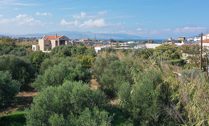 Το οικόπεδο είναι στον οικισμό Γεράνι του δήμου Πλατανιά, περίπου 20 λεπτά δυτικά από το κέντρο των Χανίων. Κύριο προσόν του είναι η πρόσβασή του καθώς απέχει μόλις 800 m από τον κόμβο εισόδου-εξόδου Πλατανιά του ΒΟΑΚ. Η περιοχή αναπτύσσεται βάση πολεοδομικού σχεδίου και το οικόπεδο τέμνεται από το όριο του οικισμού. Η τρέχουσα επιφάνεια είναι 2,290 m² ενώ μετά τις προβλεπόμενες διανοίξεις απομένουν εκμεταλλεύσιμα ένα τμήμα 1,286 m² εντός σχεδίου καθώς και ένα τμήμα επιφάνειας 1,004 m², το οποίο δεν οικοδομείται. Μεταξύ τους προκύπτει ένας δρόμος πλάτους 10 m. Το οικοδομήσιμο τμήμα έχει ενδιαφέροντα ποιοτικά στοιχεία καθώς αποκτά πρόσοψη σε τρεις δρόμος βόρεια, ανατολικά και νότια. Απέναντι βορινά του και από την πλευρά της θάλασσας έχει σχεδιαστεί η κατασκευή πλατείας. Στην υφιστάμενη ιδιοκτησία υπάρχουν ώριμα και παραγωγικά ελαιόδεντρα με αραιή φύτευση, τα οποία μπορείτε να διατηρήσετε ή να αφαιρέσετε ανάλογα με την όποια αξιοποίηση. Αν κτίσετε έναν επάνω όροφο στο μέλλον θα έχετε εξαιρετική θέα μέχρι τη θάλασσα.