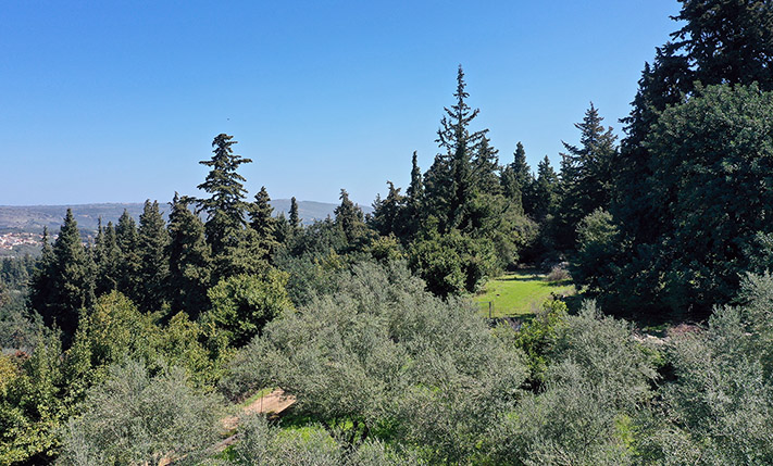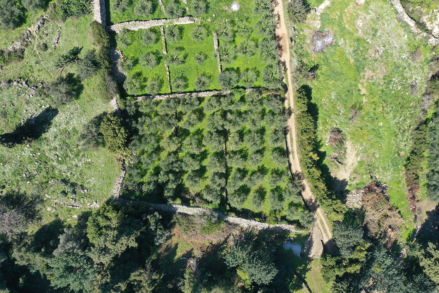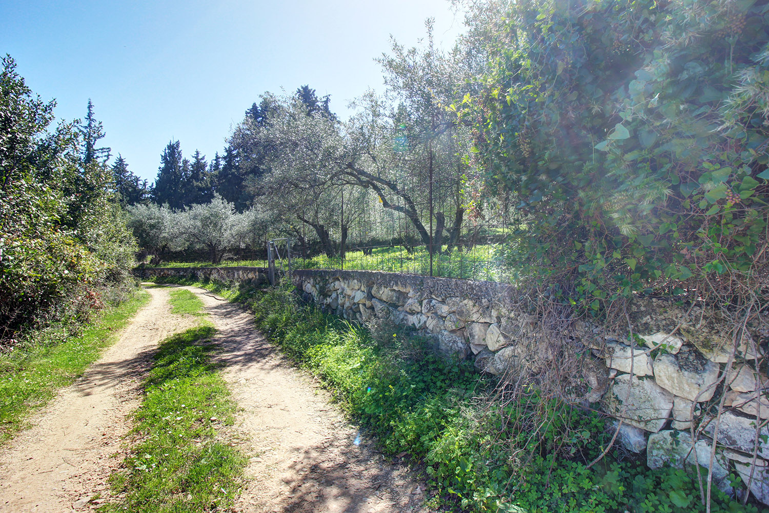 Το οικόπεδο είναι περιφραγμένο. Είναι σε μία εξαιρετικά γραφική θέση, στον οικισμό του Τζιτζιφέ, λίγο έξω από τα σπίτια και το κέντρο του χωριού. Πρόκειται για ένα οικόπεδο με ήπια βορειοανατολική κλίση και ένα δρόμο κατά μήκος της χαμηλότερης στάθμης του. Το έδαφος είναι χωρισμένο σε τρεις μεγάλες επίπεδες αναβαθμίδες που χωρίζονται με ξερολιθιές και υπάρχουν περίπου 45 ώριμα και παραγωγικά ελαιόδεντρα. Το σχήμα είναι καλό με μέσες διαστάσεις 30 m κατά μήκος της όψης * 40 m βάθος. Η θέα από όλα τα σημεία είναι πανοραμική στην κατάφυτη γύρω περιοχή. Ο υφιστάμενος διαχωρισμός εξυπηρετεί αν θέλετε να φτιάξετε τρεις ανεξάρτητες κατοικίες χωρίς ιδιαίτερες διαμορφώσεις εδάφους ή εναλλακτικά, μπορείτε να χτίσετε μία μεγάλη μονοκατοικία με άνετους εξωτερικούς χώρους.