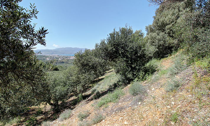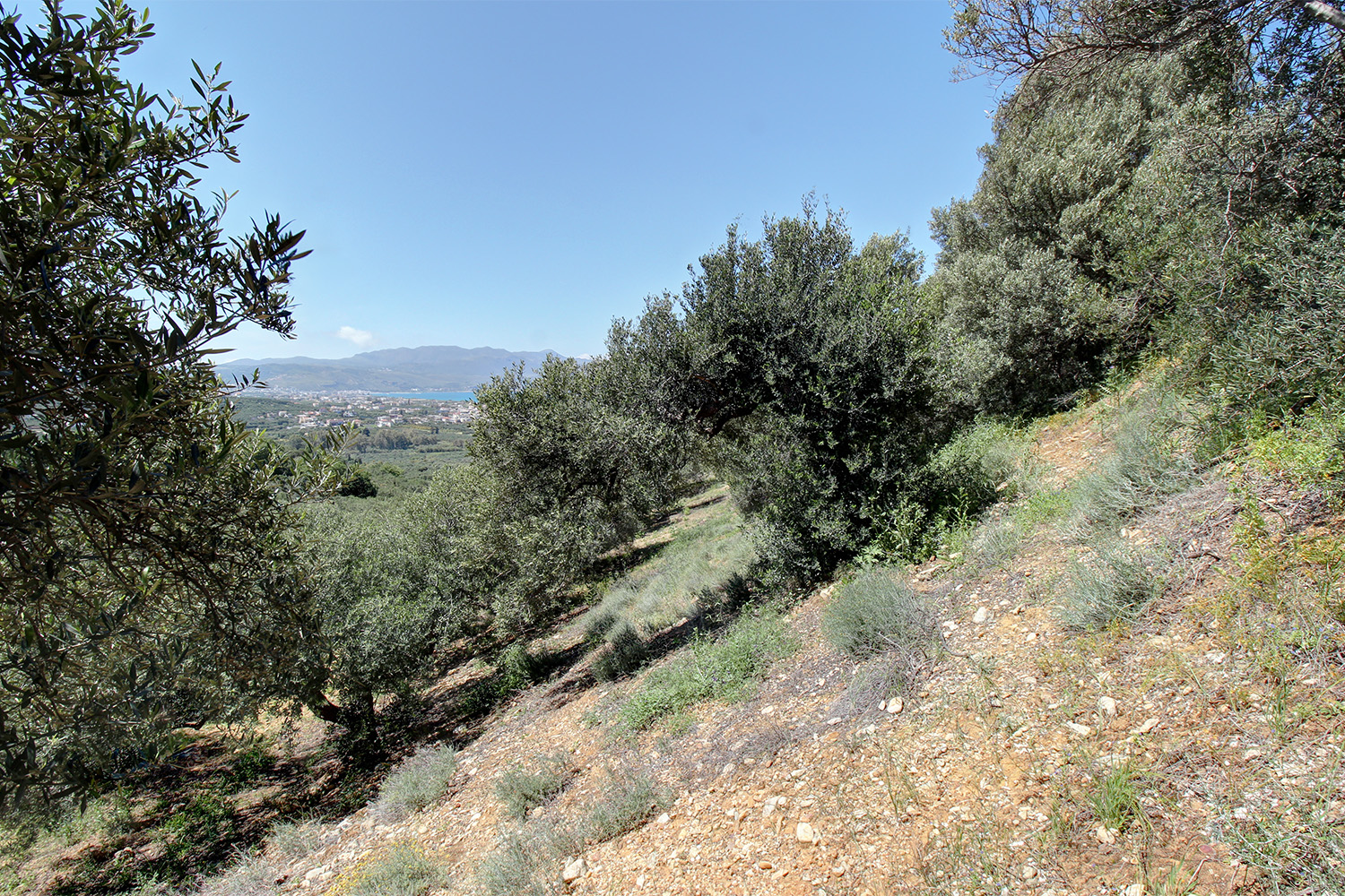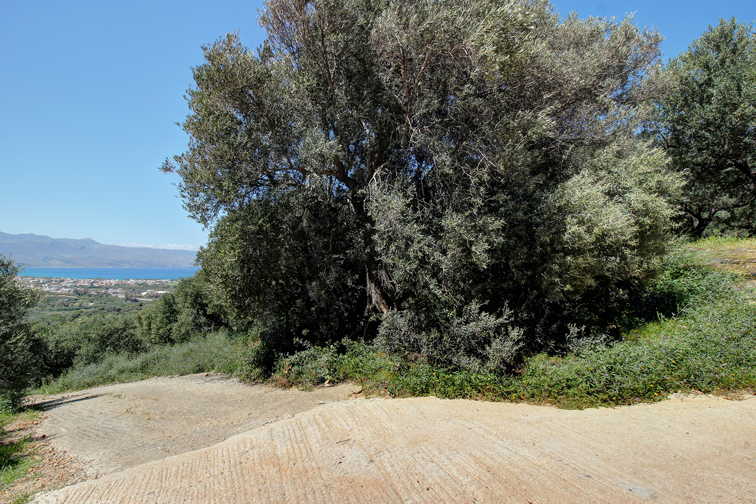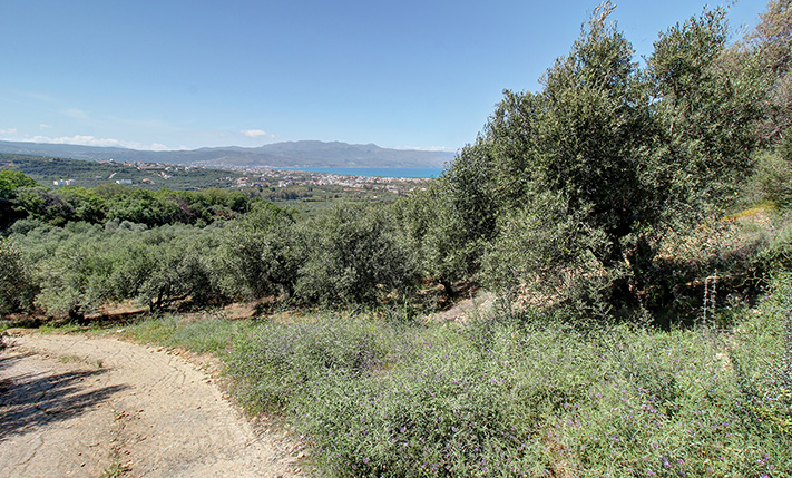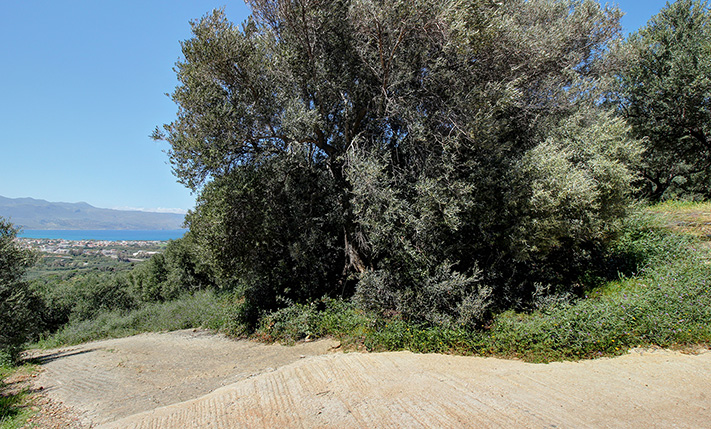 Το αγροτεμάχιο είναι λίγο έξω και νότια από τον παραθαλάσσιο οικισμό του Μάλεμε. Καταλαμβάνει μία πλαγιά με νοτιοδυτική κλίση και η θέα είναι όμορφη από όλα τα σημεία μέχρι τη θάλασσα, καθώς και επάνω από τον κατάφυτο κάμπο του ποταμού Ταυρωνίτη. Επάνω υπάρχουν περίπου 200 ώριμα ελαιόδεντρα, τα οποία συντηρούνται και είναι παραγωγικά. Η αγορά της ιδιοκτησίας ενδείκνυται για την ανέγερση μίας όμορφης κατοικίας στη φύση και κοντά στη θάλασσα. Αν είστε επαγγελματίας, το ακίνητο σας επιτρέπει, επιπρόσθετα, να κατασκευάσετε μία τουριστική μονάδα ως και 100 δωματίων με την περιοχή και τα χαρακτηριστικά του να σας εγγυόνται έναν σύντομο χρόνο απόσβεσης. Το Γερμανικό στρατιωτικό νεκροταφείο βρίσκεται σε κοντινή ακτίνα από την ιδιοκτησία και θα μπορούσε να εξυπηρετήσει την εκάστοτε τουριστική χρήση.