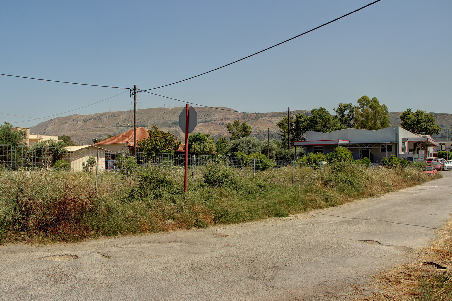 Το οικόπεδο βρίσκεται σε έναν ήσυχο παράδρομο της λεωφόρου Σούδας, σε απόσταση μόλις 2 km από το λιμάνι της Σούδας. Έχει σχεδόν ορθογώνιο σχήμα με διαστάσεις περίπου 50 m * 25 m και προσόψεις σε τρεις δρόμους. Είναι περιφραγμένο και σε ένα μέρος του υπάρχουν πορτοκαλιές και ελαιόδεντρα. Η τοποθεσία είναι εξαιρετική και ως εκ τούτου, η αγορά του ακινήτου ενδείκνυται για εμπορική αλλά και για οικιστική αξιοποίηση. Το κέντρο της πόλης των Χανίων απέχει περίπου 4 km.