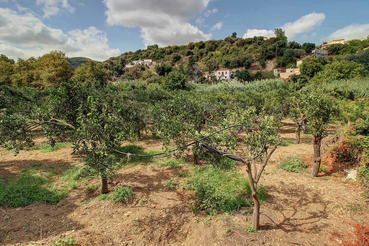 Η ιδιοκτησία είναι στην είσοδο ενός μικρού οικισμού του δήμου Πλατανιά, σε απόσταση 5-10 λεπτά οδήγησης νοτιοδυτικά από το κέντρο του. Πρόκειται για οικόπεδο, το οποίο έχει καλό σχήμα και προσόψεις σε δύο δρόμους. Έχει επίσης περίπου 80 ώριμες και παραγωγικές πορτοκαλιές.