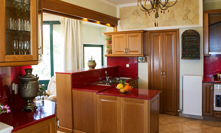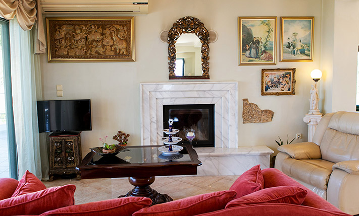 Το ακίνητο έχει κατασκευαστεί με άριστα υλικά και υπάρχουν πολλά διακοσμητικά στοιχεία, πάγκοι κουζίνας από γρανίτη, μαρμάρινες σκάλες, επενδύσεις με πέτρα, ψευδοροφές με κρυφό φωτισμό και άλλα πολυτελή χαρακτηριστικά. Οι χώροι μέσα στο κτήριο είναι μεγάλοι και φωτεινοί ενώ εξωτερικά υπάρχουν τεράστια μπαλκόνια και μεγάλες αυλές. Το ακίνητο διαθέτει φρεάτιο και πρόβλεψη για την προσθήκη ανελκυστήρα. Γύρω από τα διαμερίσματα υπάρχουν πολλές αποθήκες, όπου βρίσκονται το λεβητοστάσιο και αποθηκεύονται τα έπιπλα του κήπου το χειμώνα. Κάθε διαμέρισμα έχει αυτόνομη θέρμανση με καλοριφέρ και υπάρχουν κλιματιστικά στις κρεβατοκάμαρες και τους κύριους χώρους. Το ηλεκτρικό ρεύμα κάθε διαμερίσματος ελέγχεται και κλείνει κεντρικά με μαγνητικές κάρτες. Υπάρχουν, τέλος, ηλιακοί θερμοσίφωνες για κάθε διαμέρισμα και πορτοπαράθυρα αλουμινίου με σήτες και διπλά τζάμια.
