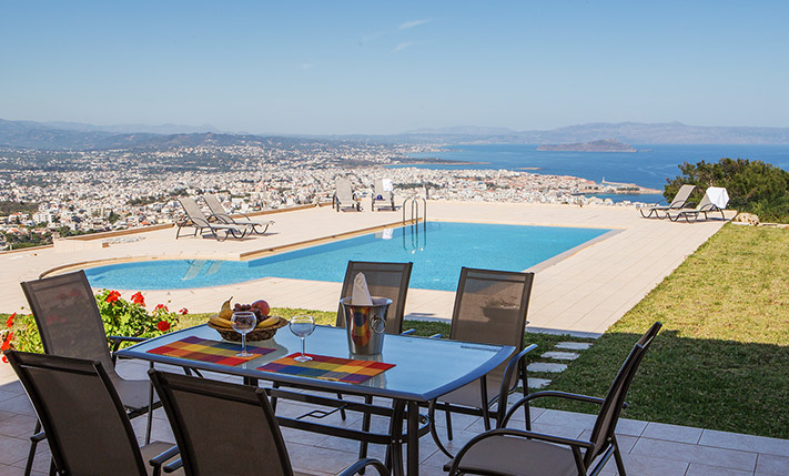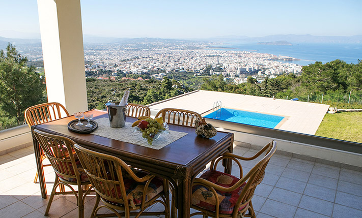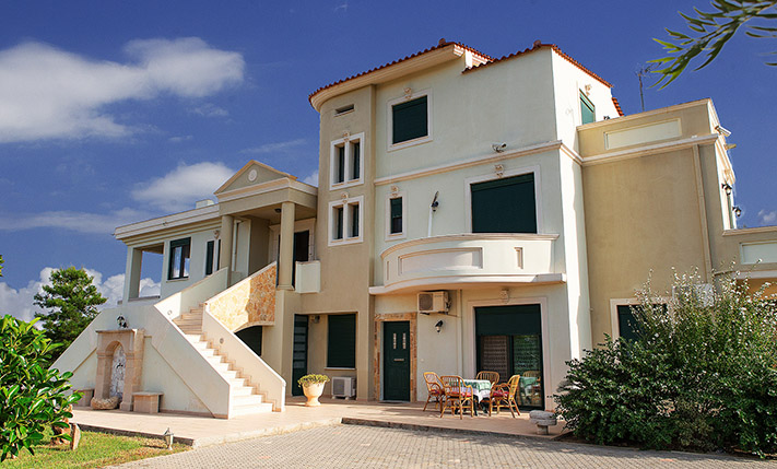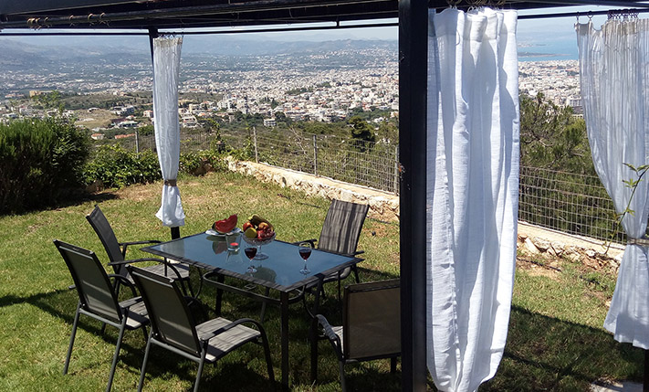 Το ακίνητο έχει συνολικά 10 κρεβατοκάμαρες, οι οποίες μπορούν να φιλοξενηθούν άνετα 18 ή και παραπάνω άτομα. Οι δύο γκαρσονιέρες αυτή τη στιγμή χρησιμοποιούνται ως αποθήκες ενώ μπορούν να φιλοξενήσουν 3 ως 4 επιπλέον άτομα και ενδείκνυνται για τη διαμονή του προσωπικού. Το οικόπεδο είναι περιφραγμένο και προσβάσιμο με μία μεταλλική ηλεκτρική πύλη και από μία πόρτα επισκεπτών. Οι εξωτερικοί χώροι είναι άριστα διαμορφωμένοι με ανθόκηπους, λαχανόκηπο, κήπο με γρασίδι, χώρους μπάρμπεκιου, μία λιμνούλα, μία πισίνα περίπου 50 m² και σημεία χαλάρωσης που μπορούν να εξυπηρετήσουν ξεχωριστά κάθε διαμέρισμα. Υπάρχουν, επίσης, πολλά εσπεριδοειδή και άλλα καρποφόρα δέντρα καθώς και διάφορα είδη βρώσιμης ελιάς. Από τη βορειοανατολική πλευρά του ακινήτου υπάρχει ωραία θέα προς τη θάλασσα και πάνω από την πόλη των Χανίων, η οποία θα παραμείνει εγγυημένα ανεμπόδιστη καθώς η ιδιοκτησία συνορεύει με χαρακτηρισμένη δασική έκταση.