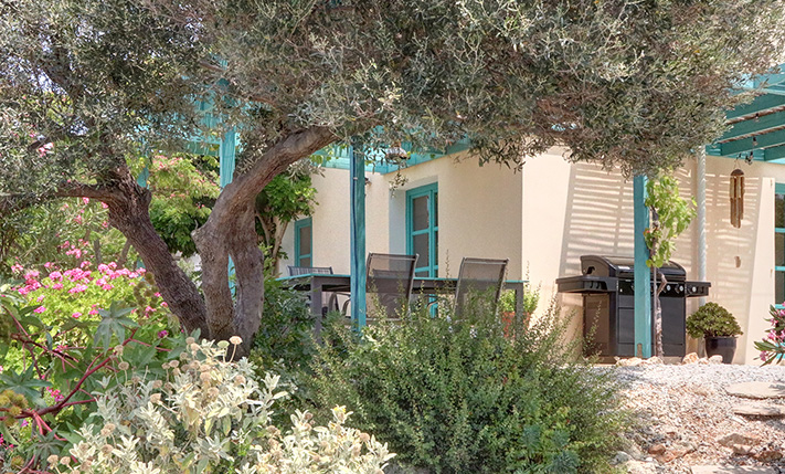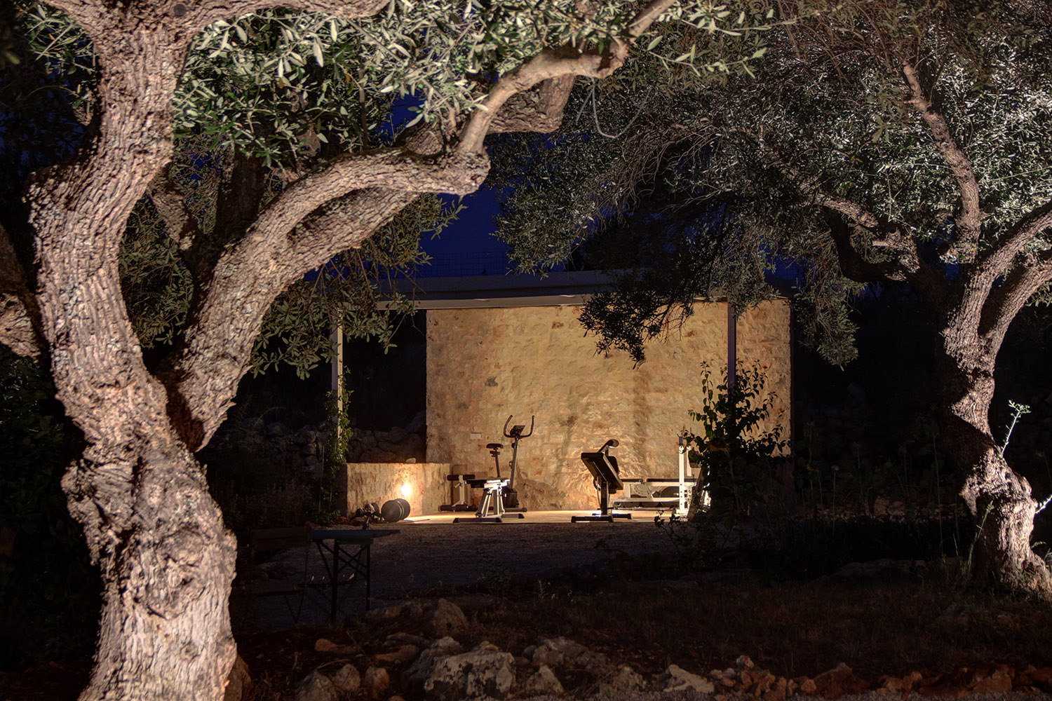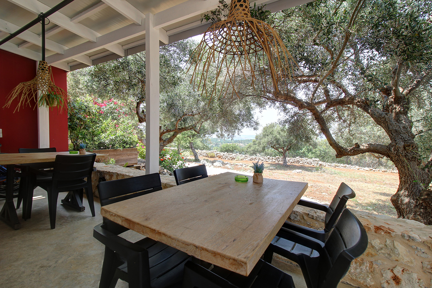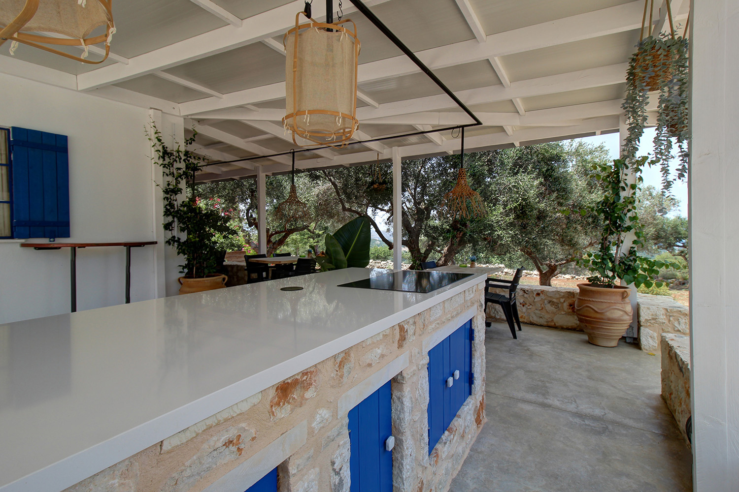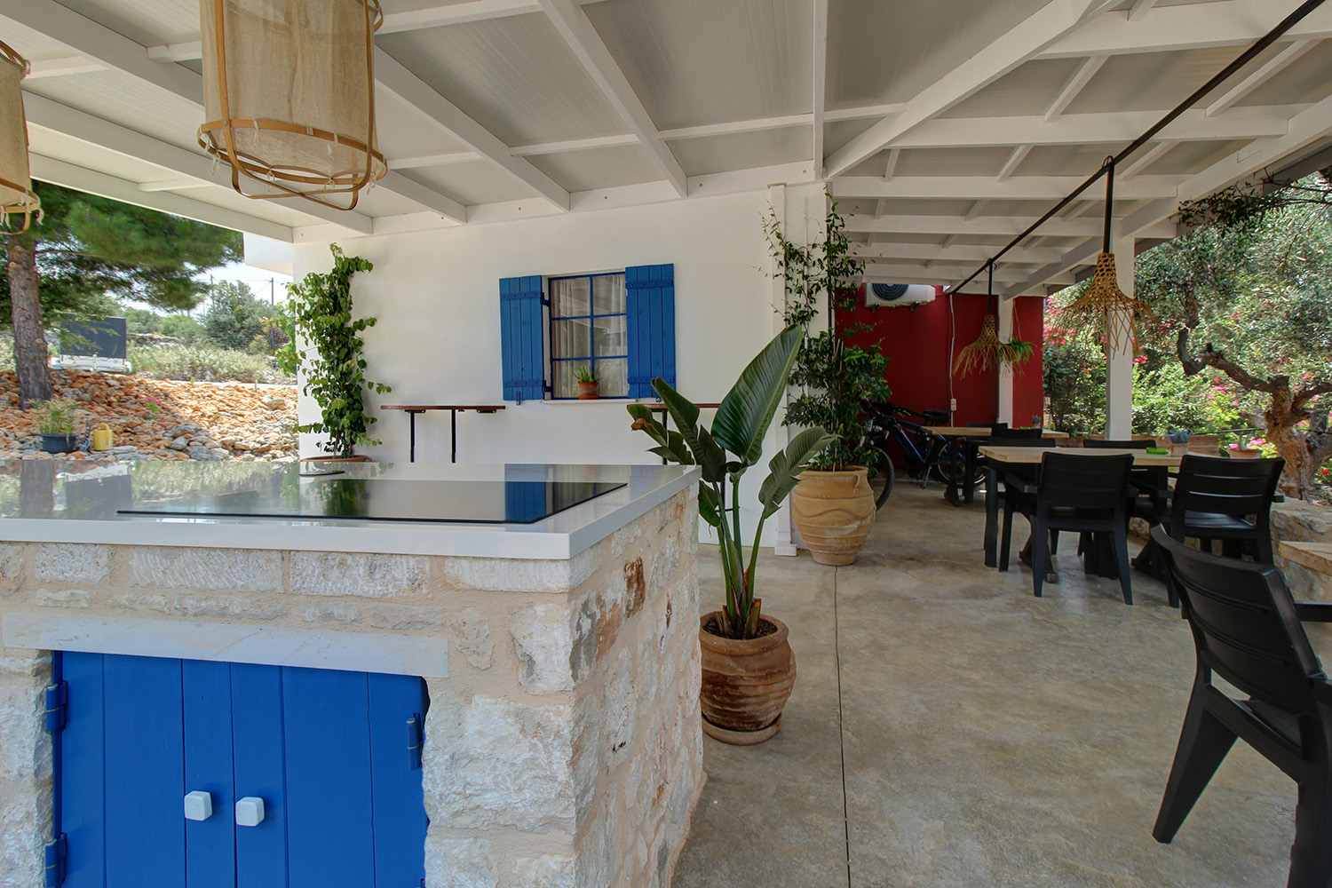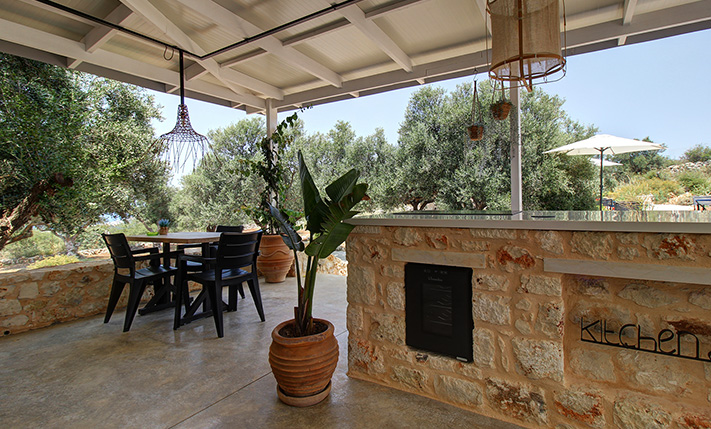 Το οικόπεδο είναι ελαφρώς επικλινές και έχει ανεμπόδιστη θέα στη θάλασσα από όλα τα σημεία του. Είναι επίσης οριοθετημένο στο σύνολό του και ιδανικό αν έχετε παιδιά ή κατοικίδια. Περιμετρικά του κτηρίου έχουν φτιαχτεί όμορφοι βραχόκηποι, ένας χώρος στάθμευσης, ένας εντυπωσιακός χώρος πρωινού με εξωτερικό μπαρ καθώς και ένας στεγασμένος χώρος γυμναστηρίου. Υπάρχουν, επίσης, πολλές επιλογές για να απολαύσετε τον καφέ ή το γεύμα σας υπό σκιά ή να χαλαρώσετε κάτω από τον ζεστό καλοκαιρινό ήλιο. Το μέγεθος του οικοπέδου σας δίνει τη δυνατότητα να προσθέσετε πισίνα, ένα γήπεδο τένις ή οτιδήποτε άλλο καλύπτει τις ανάγκες σας. Ο κήπος του ακινήτου περιλαμβάνει, μεταξύ άλλων, 15 παραγωγικά ελαιόδεντρα που αρκούν για να καλύψουν τις ανάγκες σε ελαιόλαδο μίας μέσης οικογένειας. Παρακείμενα του οικοπέδου υπάρχει ένα επιπλέον δασικό τμήμα 823 m² το οποίο δεν συμπεριλαμβάνεται στην πώληση, αλλά είναι εντός της περίφραξης του ακινήτου και θα το χρησιμοποιείτε κατά αποκλειστικότητα.