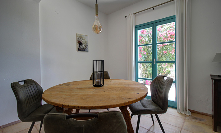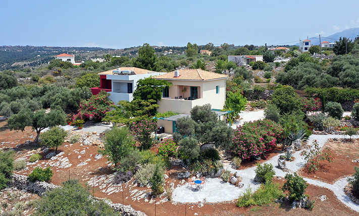 Το ακίνητο είναι κτισμένο σε μία κατάφυτη πλαγιά, σε απόσταση περίπου 2 km από την γραφική κωμόπολη του Βάμου, περίπου 3 km από το Γαβαλοχώρι του δήμου Αποκορώνου. Πρόκειται για ένα κτήριο δύο επιπέδων με ανεμπόδιστη θέα προς τη θάλασσα και από τον όρμο της Σούδας. Υπάρχουν μία μονόχωρη γκαρσονιέρα ισογείου 30 m², μία 28 m² στον όροφο καθώς και δύο διώροφες μεζονέτες με δύο υπνοδωμάτια και δύο μπάνια η κάθε μία, 98 m² και 97 m². Το κτήριο περιλαμβάνει επιπλέον βοηθητικούς χώρους με αποθήκες στο κτήριο 15 m² και επιπλέον εξωτερική αποθήκη 20 m². Το ακίνητο έχει ανακαινιστεί το 2023 και δίνεται πλήρως εξοπλισμένο και σε άριστη κατάσταση.