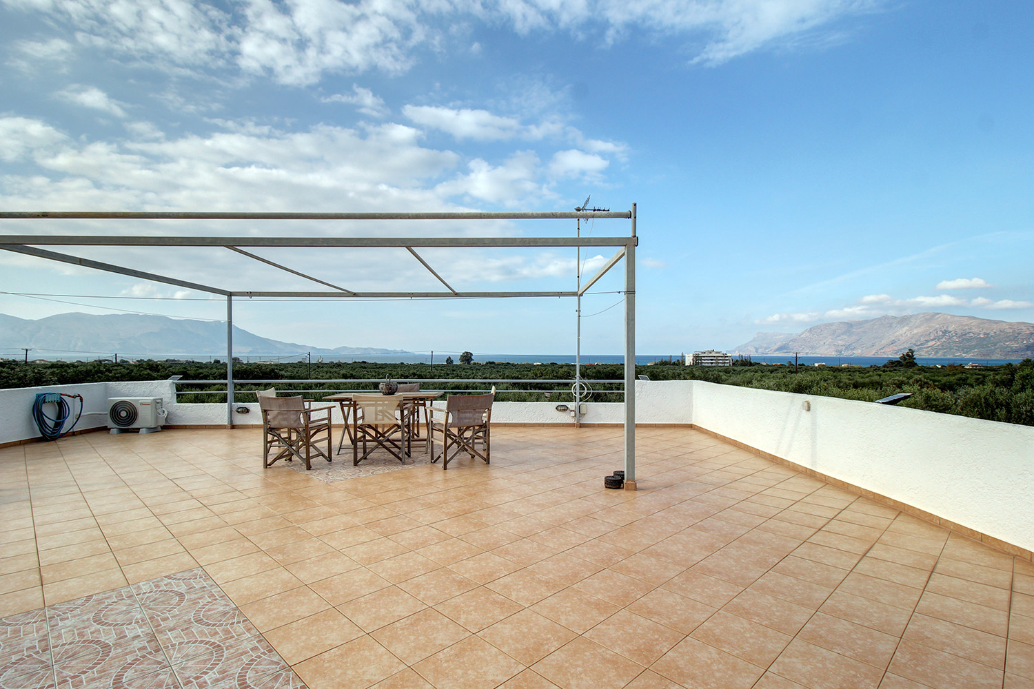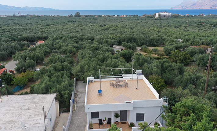 Το ακίνητο διαθέτει κλιματισμό και έχει έτοιμη όλη την υποδομή για κεντρική θέρμανση με καλοριφέρ και λέβητα πετρελαίου. Διαθέτει επίσης ηλιακό θερμοσίφωνα. Το 82 m² υπόγειο είναι σύγχρονα διαμορφωμένο σαν ένα όμορφο αυτόνομο διαμέρισμα με μεγάλους χώρους. Στην ταράτσα του κτηρίου υπάρχει μία σιδερένια πέργολα που σκεπάζεται με λευκό τεντόπανο. Όλη η ταράτσα έχει περιμετρικά ένα κτιστό στηθαίο, είναι στρωμένη με πλακάκια και προσφέρει εξαιρετική ανεμπόδιστη θέα περιμετρικά στη πεδιάδα, στη θάλασσα, στο ηλιοβασίλεμα και σε όλο τον κόλπο της Κισσάμου. Το ακίνητο εφάπτεται στο όριο του οικισμού, γεγονός που διασφαλίζει την όμορφη θέα και μελλοντικά.